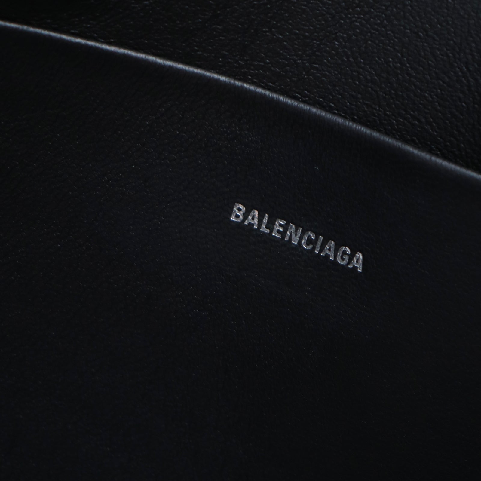 In black smooth leather, this classic Balenciaga house pocket is sublime with its two -color 3D effect logo.