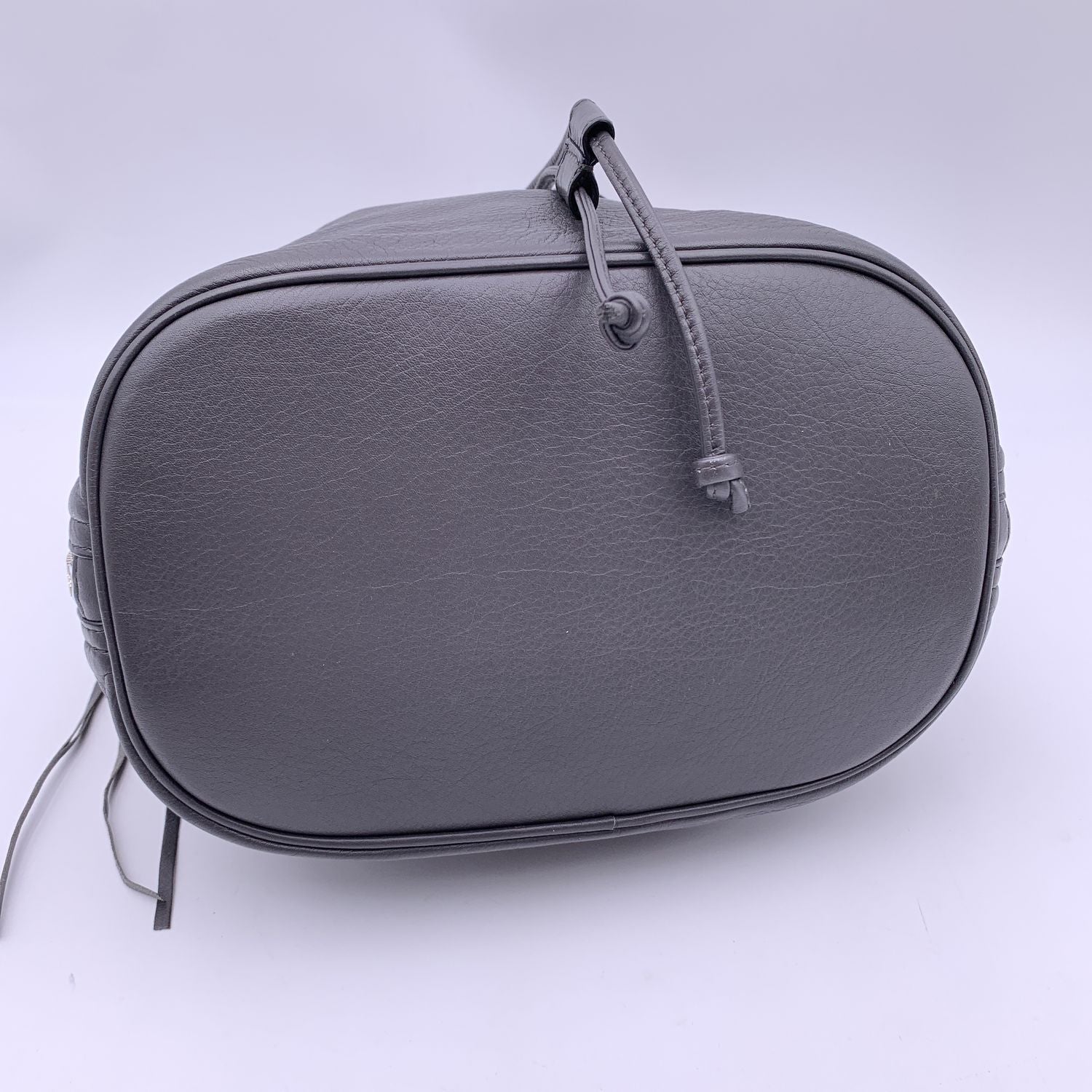 The Certificate Will Be Provided At No Further Cost Balenciaga Grey Leather Papier Plate Bucket Bag.