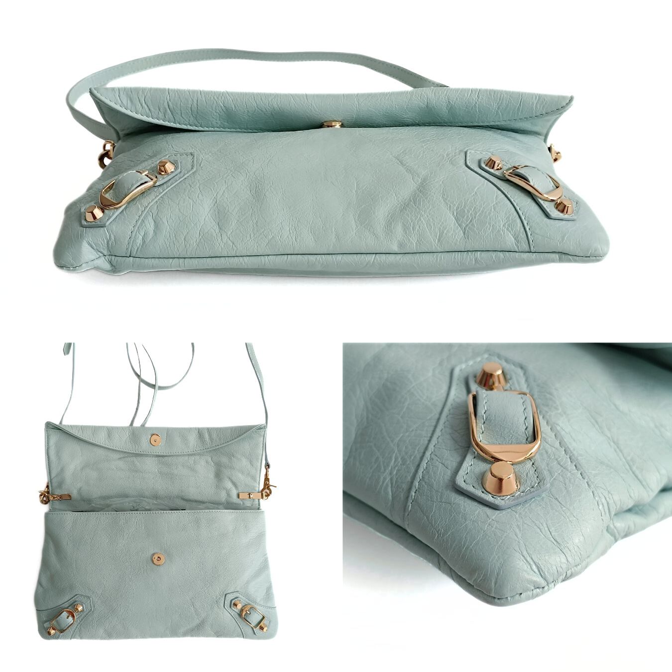 BALENCIAGA Balenciaga Balenciaga Giant Clutch with shoulder strap in aqua green leather
