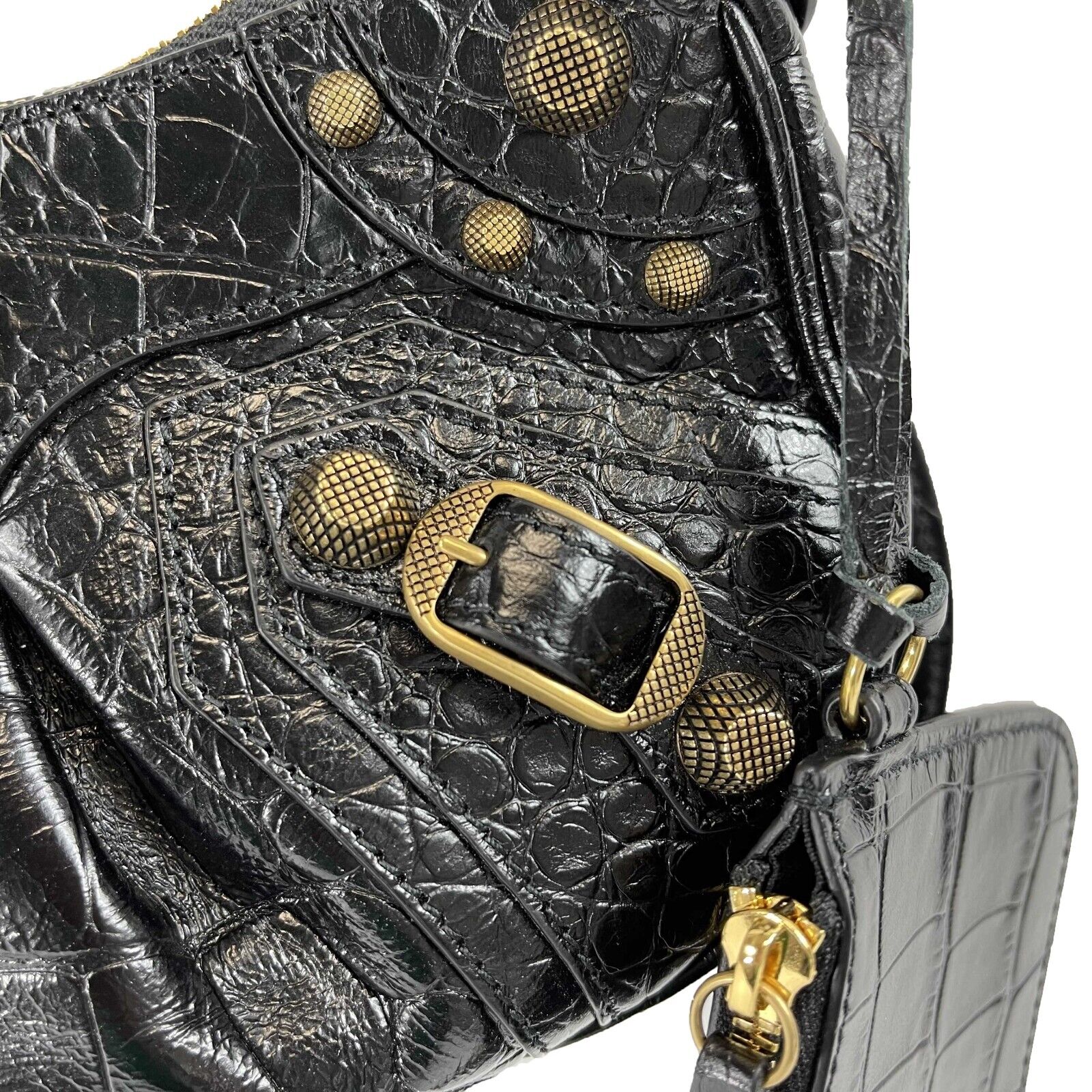 Balenciaga - New - Black Le Cagole XS Shoulder Bag Crocodile Embossed Studded shoulder bag - Black - Handbag