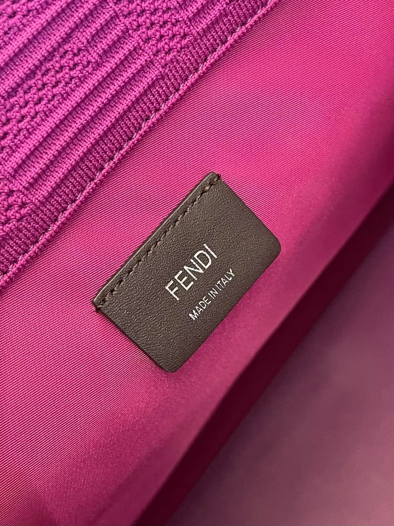 Medium Sunshine Shopper bag made of purple technical mesh with 3D-texture FF motif and stiff tortoiseshell-effect plexiglass handles.