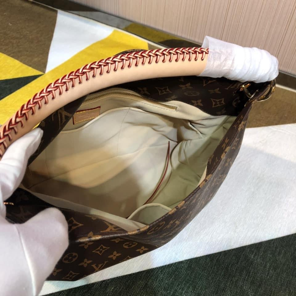 The Artsy MM embodies understated bohemian style. Louis Vuitton's iconic and divinely supple Monogram canvas is enhanced by rich golden color metallic pieces and an exquisite handcrafted leather handle.