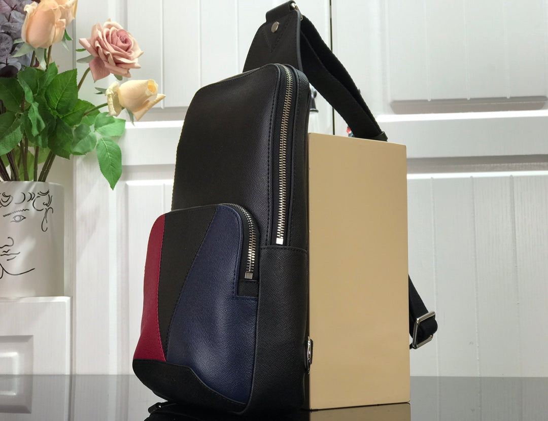 This new interpretation of the Avenue Sling Bag uses the art of leather marquetry to make a subtle signature statement. Panels of embossed Taiga leather in burgundy, black and navy blue are pieced together in a “V” pattern, evoking the House’s logo. Multiple pockets and a body-friendly strap make it a classy, contemporary way to carry everyday essentials.
