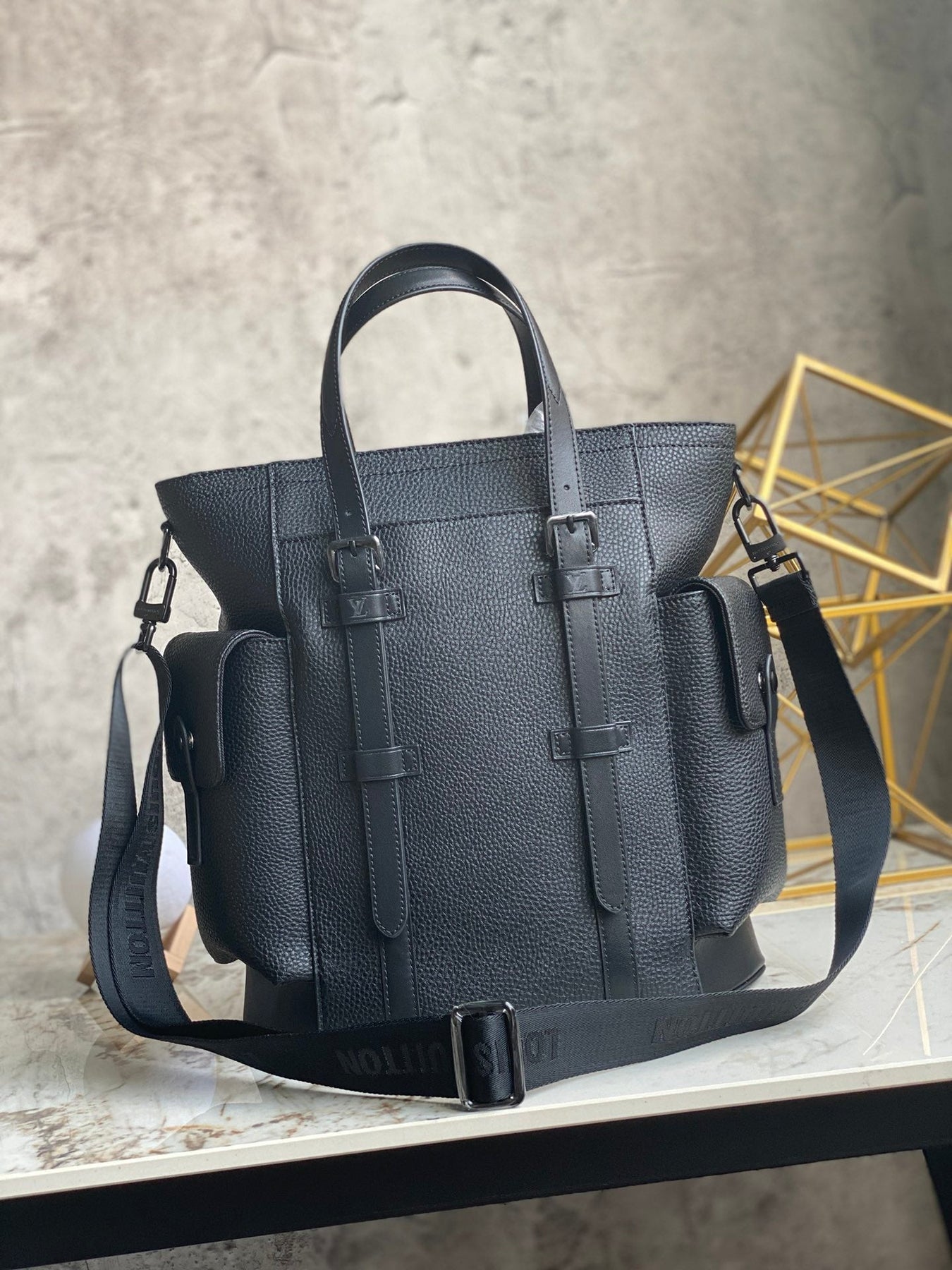 This new tote captures the rugged outdoor spirit of Louis Vuitton’s classic Christopher backpack. Stylish and practical, it offers a spacious main compartment plus two snap-shut side pockets and an LV signature strap for easy carrying.