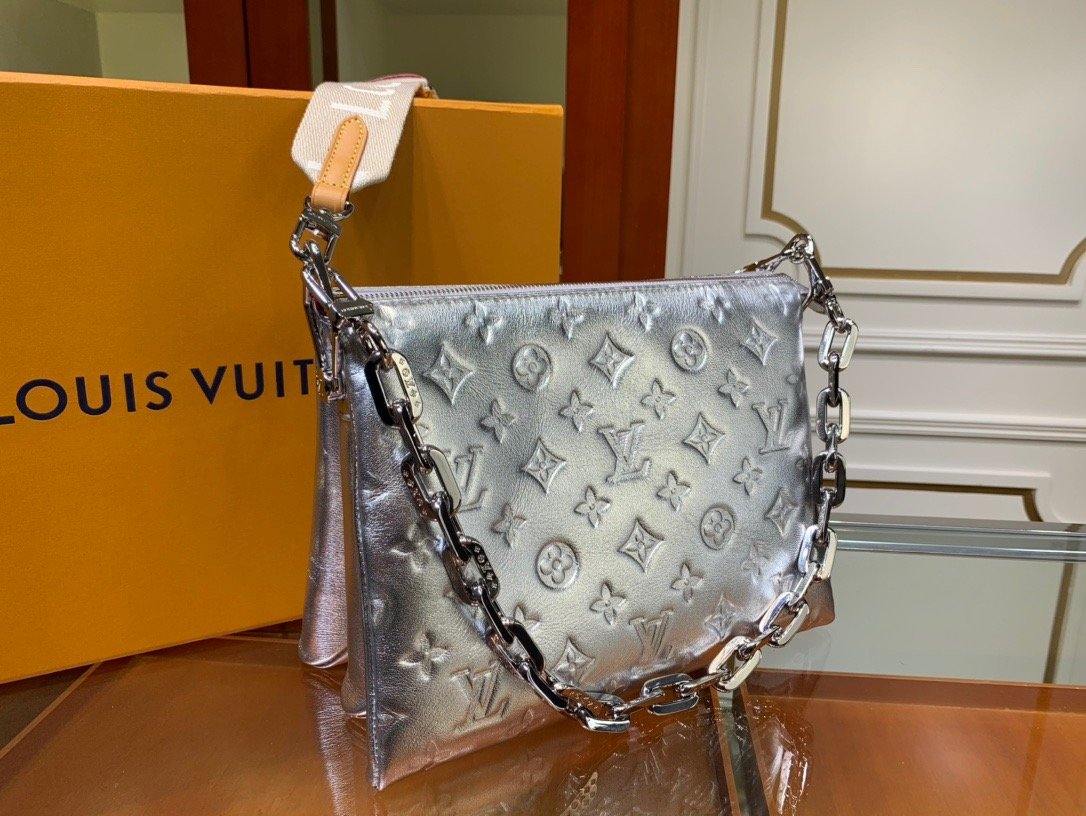 One of the stars of the Spring-Summer 2021 show, the Coussin PM handbag is made from Monogram-embossed puffy lambskin. It can be worn cross-body with the strap, as a chain baguette, or comfortably carried under the arm. The pillow-like Coussin bag brings style to the most simple look, giving it an effortless fashion-forward allure.