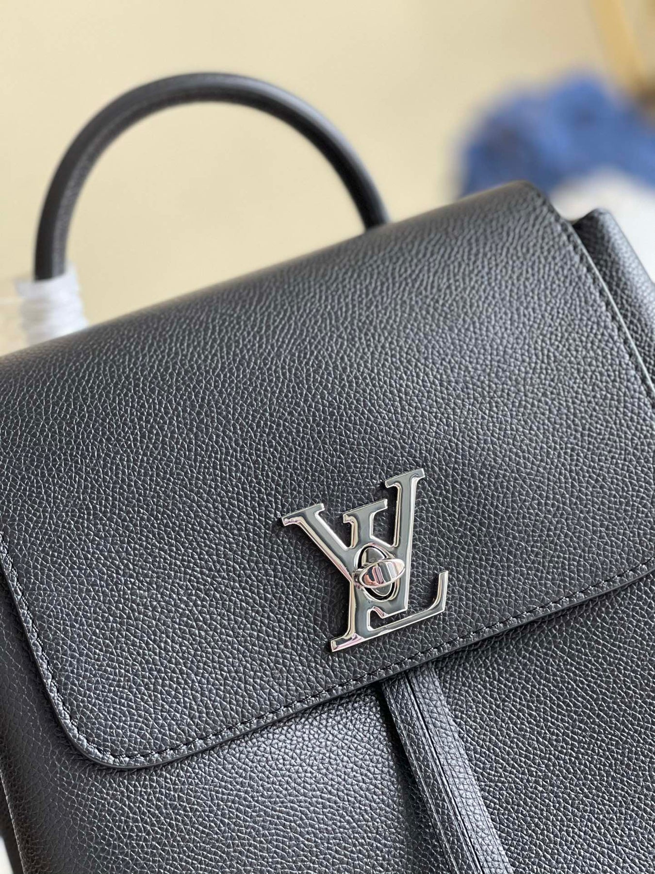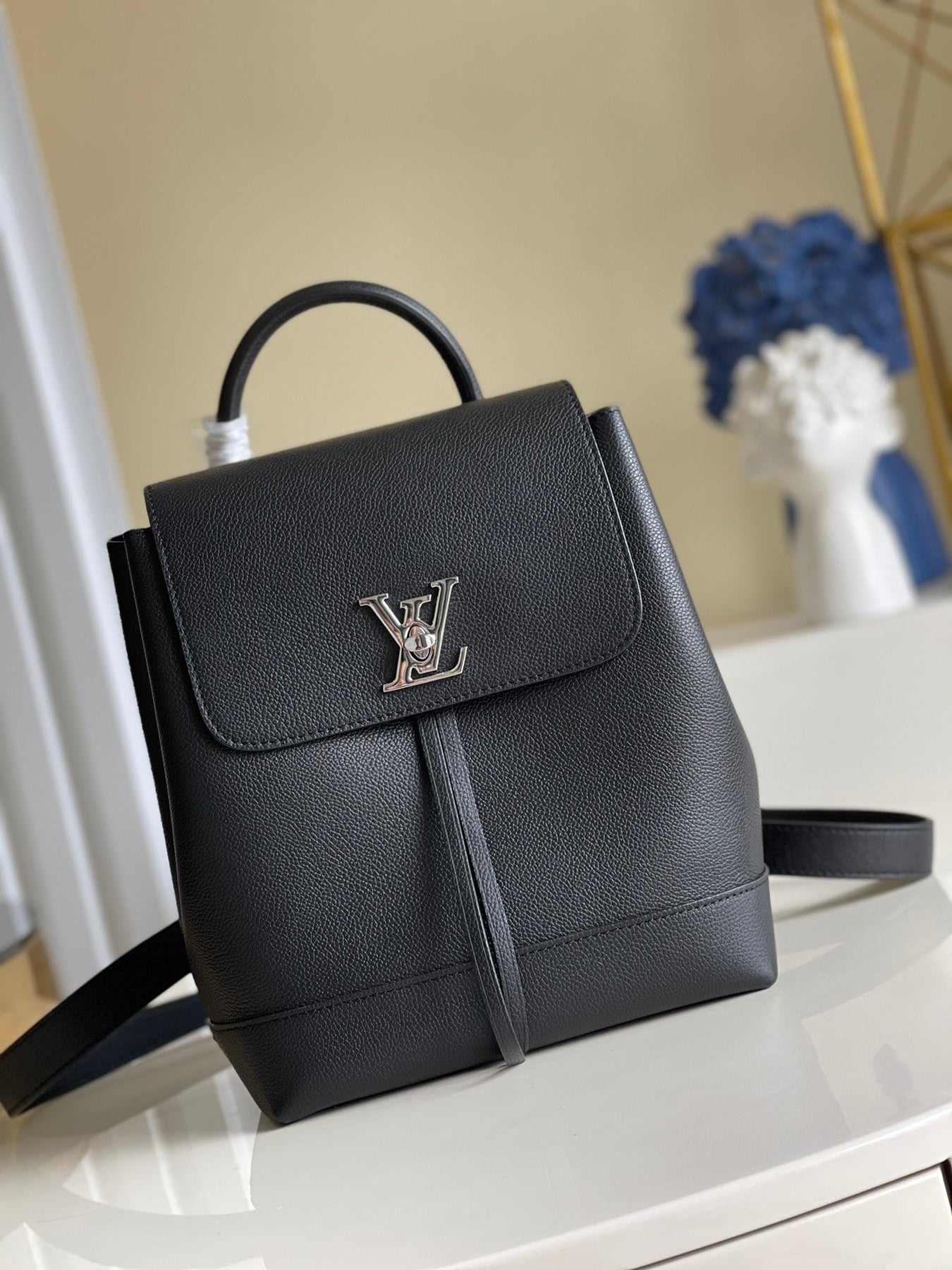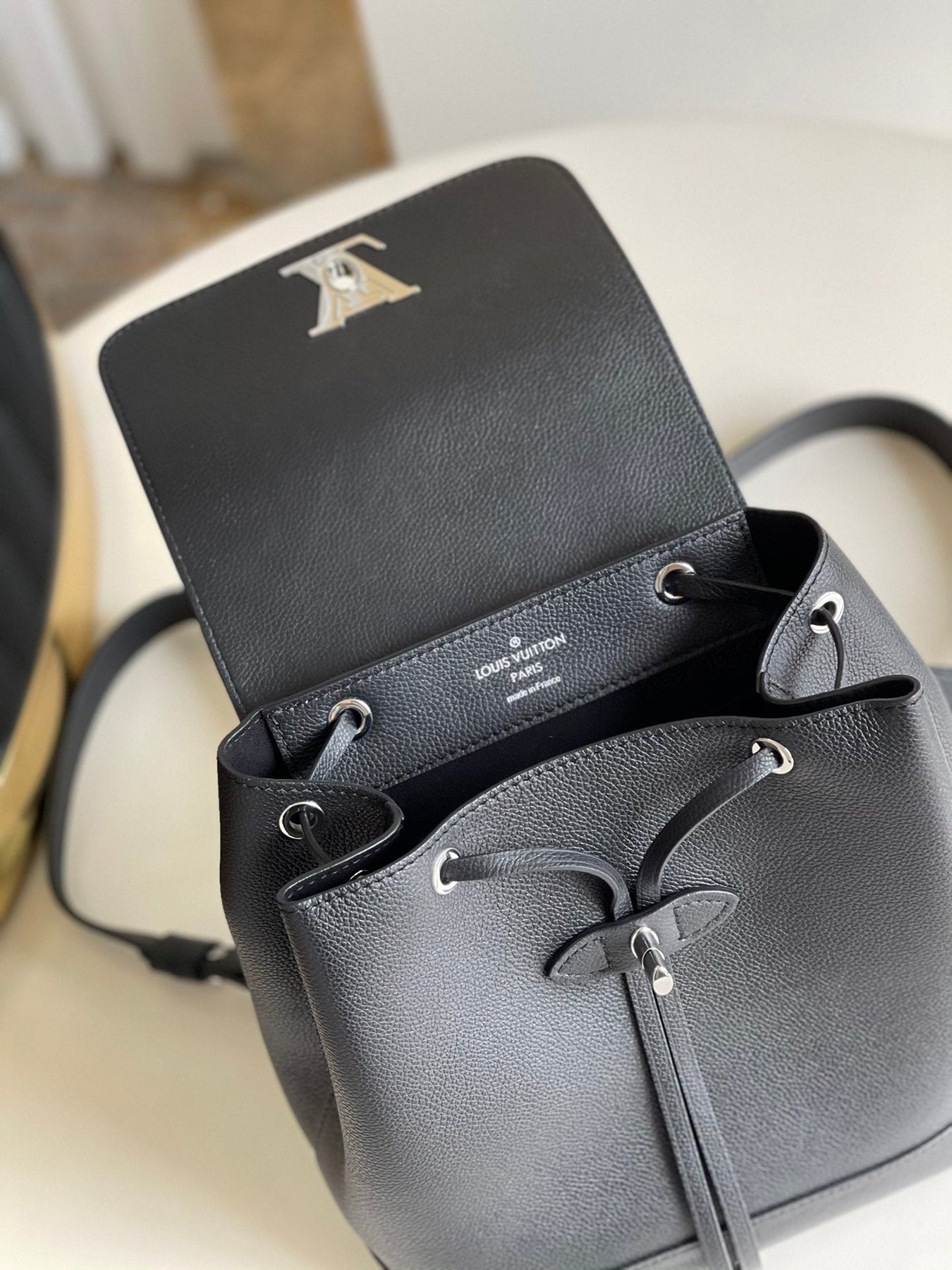 A sleek backpack with a youthful allure, the Lockme Backpack is crafted from fine-grained calfskin with a particularly soft hand. This lightweight daily bag offers good capacity and several carry options: by the top handle for an on-point look, on a single strap over the shoulder or classic backpack style. The LV turn lock adds a discreet signature.