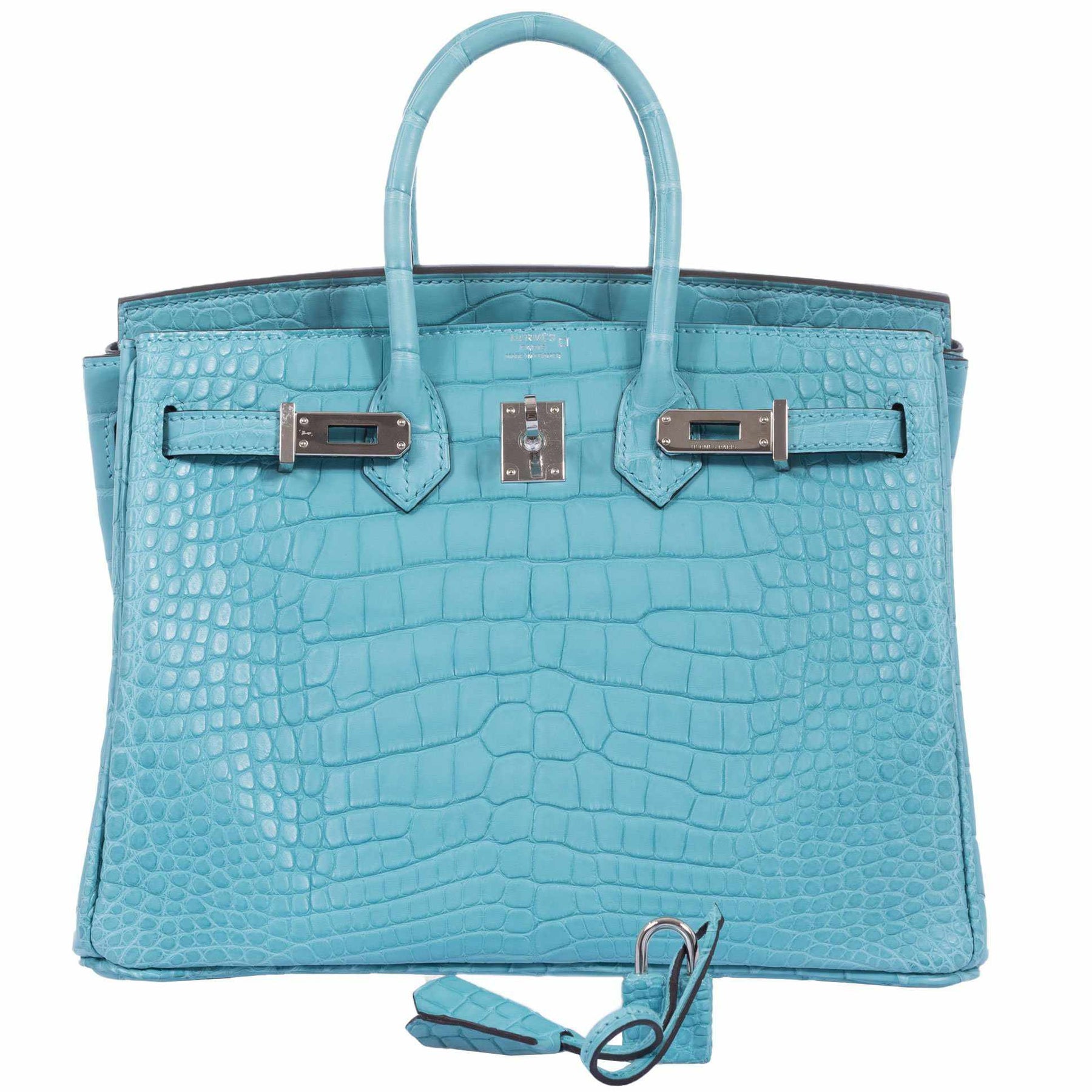 A stunning Hermes Birkin 25 Blue Saint Cyr in Matte Alligator and Palladium Hardware. This material and color combination is sublime with fantastic scales in the perfect size for day or evening.