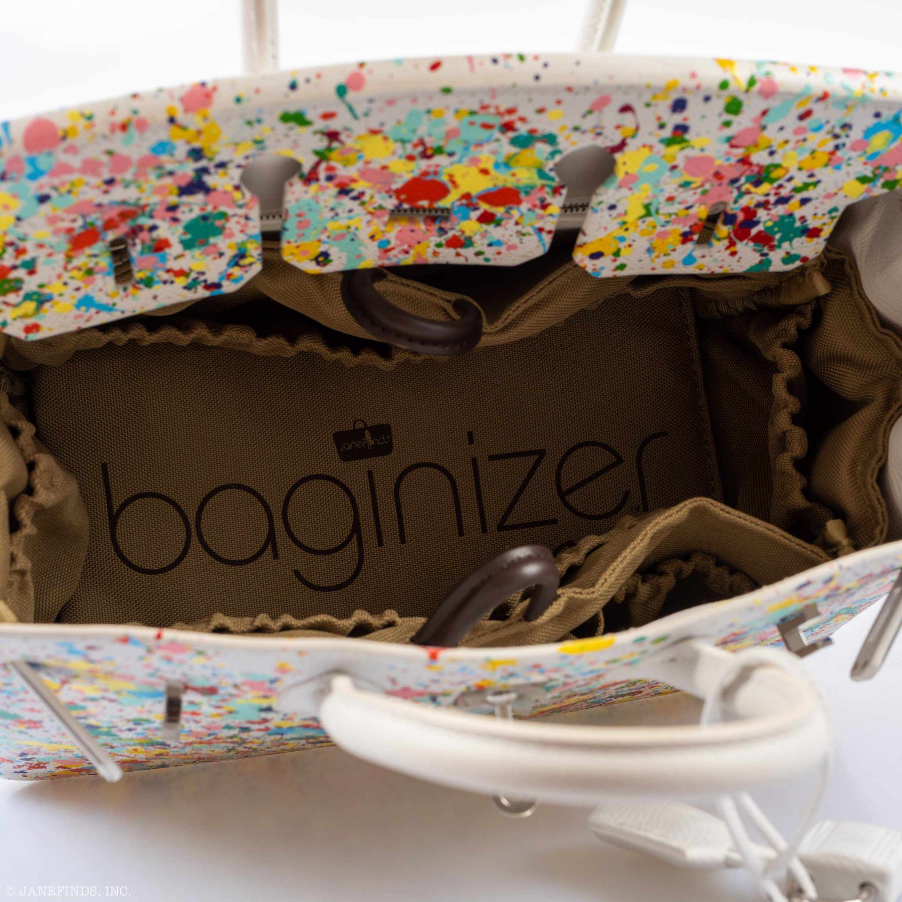 This little bag started life out as a cloud, white and fluffy floating happily along. One rainy day he saw you walking below, bummed by the rain being thrown down by his buddies, so when the gray clouds were all spent, he went careening down to earth to cheer you up. On his way down he smashed through a fresh rainbow that had popped up after the rain and got little bits of rainbow juice all over himself. Feeling pretty cute, he decided not to wash off and brought his new rainbow fizz straight to you! One of one.