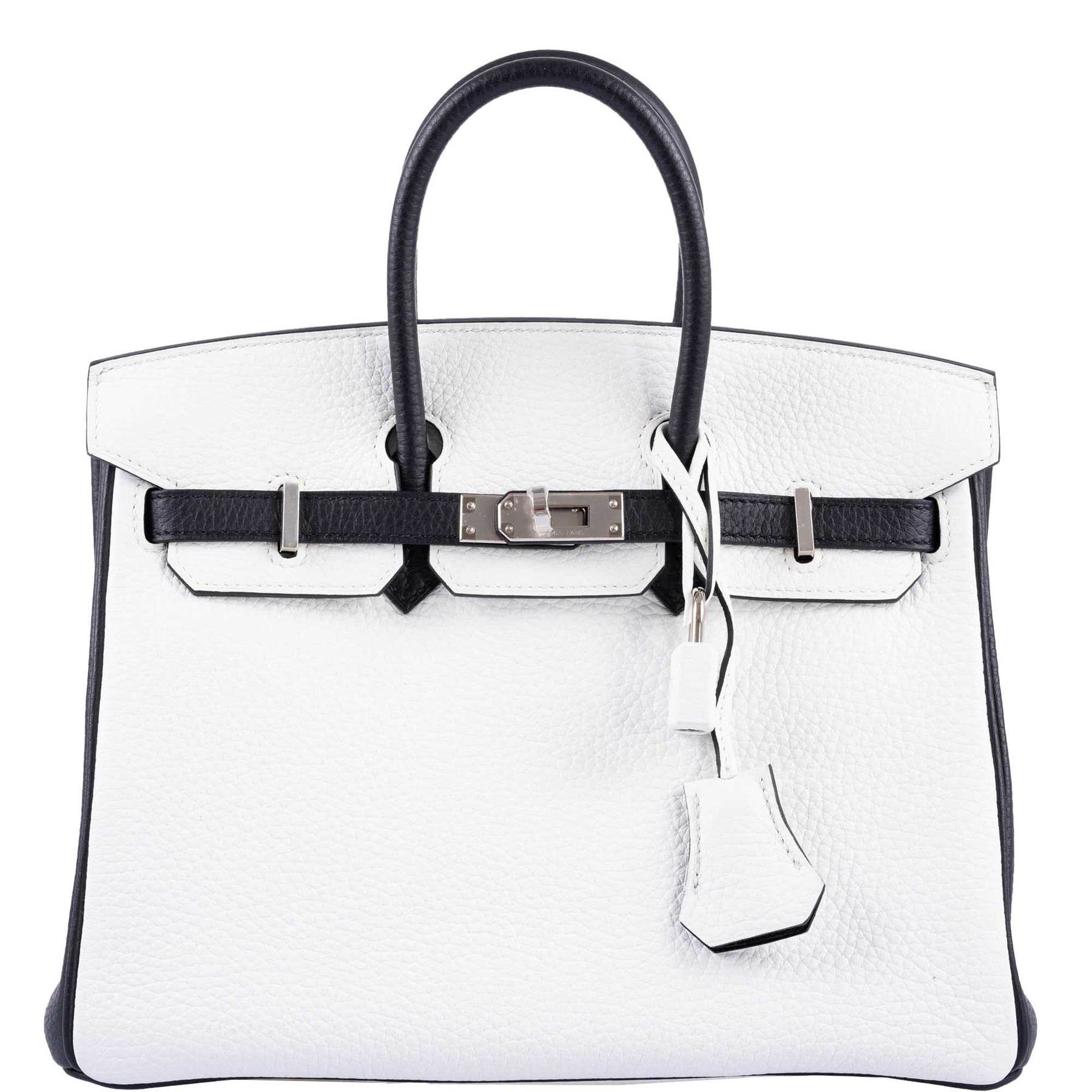 An opportunity to special-order a Birkin is only offered to a certain level of VIP Hermes clients, and this bag takes full advantage of its opportunities! Rendered in Togo leather, this 25cm Birkin (In a perfect Baby Birkin size) sports Black and White Togo Leather topped with Palladium hardware, an option only available via the HSS process, and kept in Store Fresh condition by a seasoned collector.