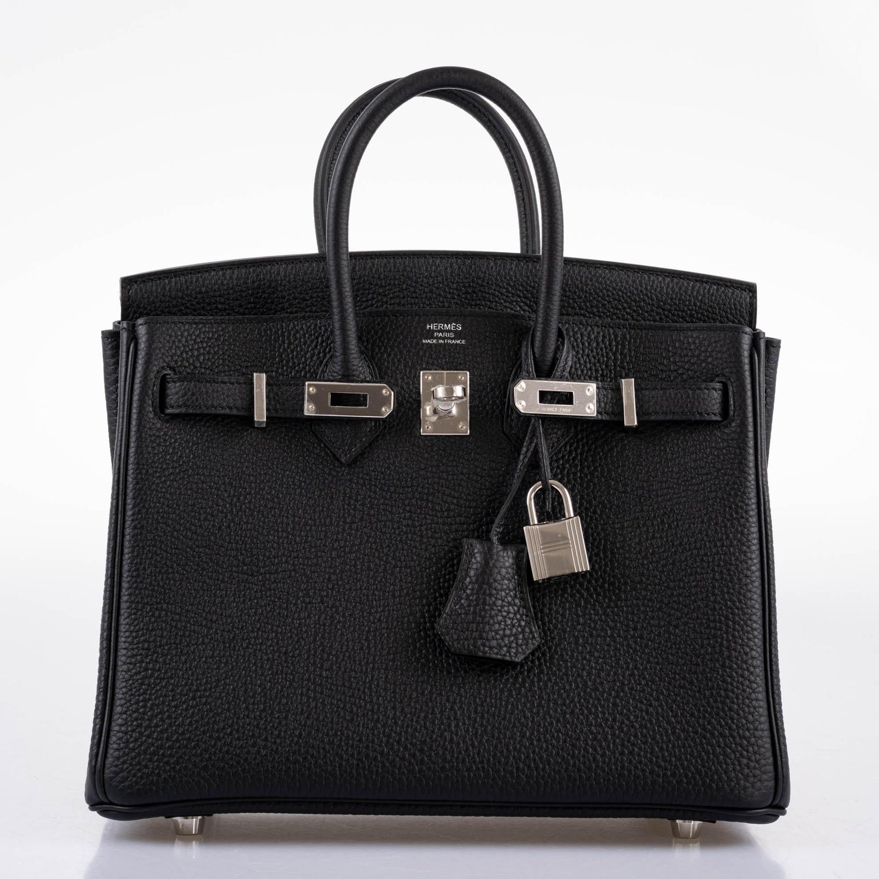 Birkin bags are known for being hard to get, always ‘sold out’ in stores, being offered even a simple leather Birkin is never guaranteed. The black Togo Birkin 25cm is a forever staple in your collection, especially with Palladium Hardware. This Birkin features front toggle closure, clochette with lock and two keys, and double rolled handles. The interior is lined in chèvre black leather.