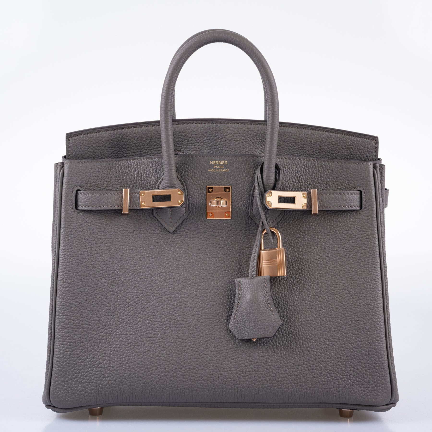 Birkin bags are known for being challenging to get, always ‘sold out’ in stores, being offered even a simple leather Birkin is never guaranteed. This rare tin grey Etain Togo leather Birkin 25cm is a forever staple in your collection. Super Rare Introduced in the 2011 Autumn Winter collection, “Etain” refers to "tin" in French. This matte grey is effortless day or night.