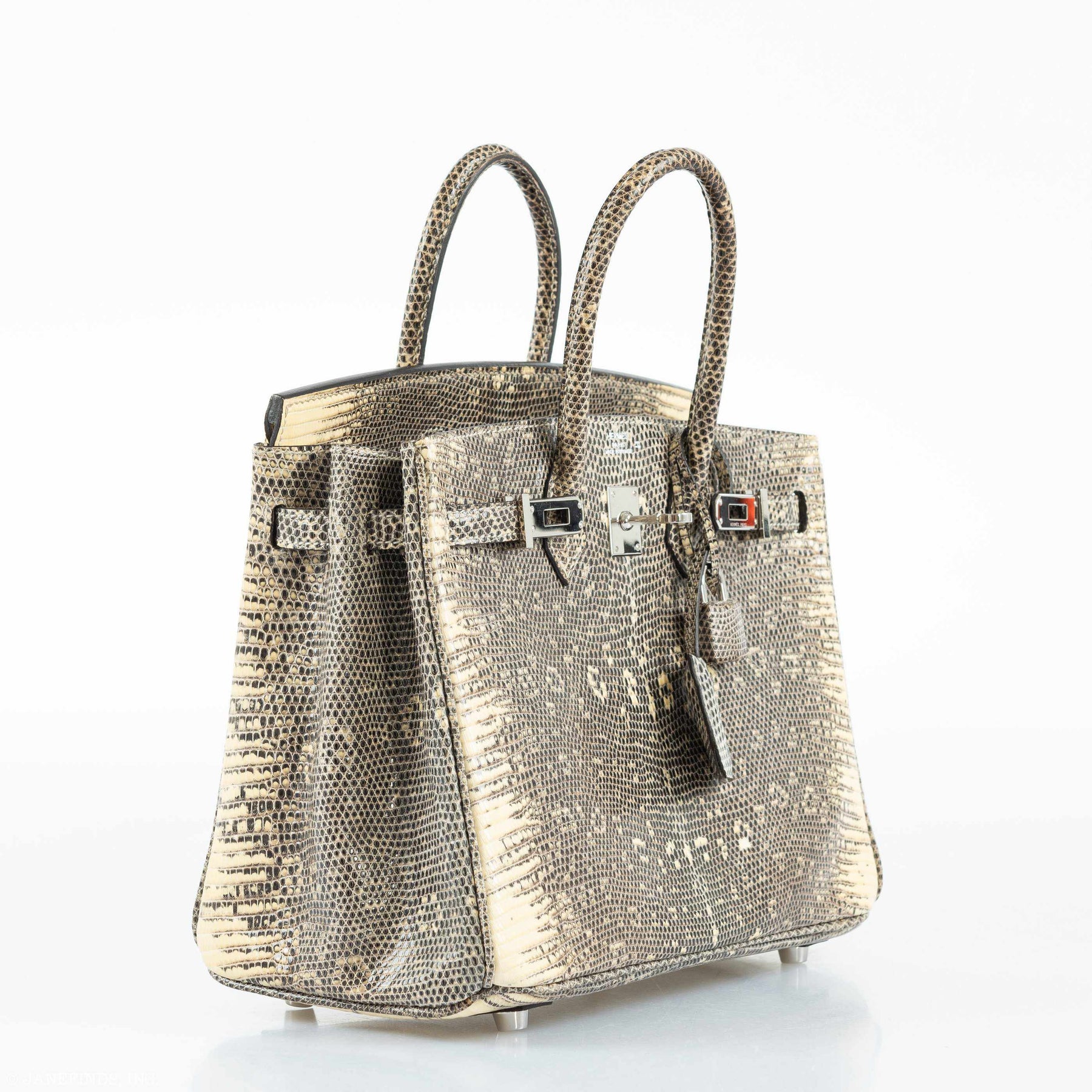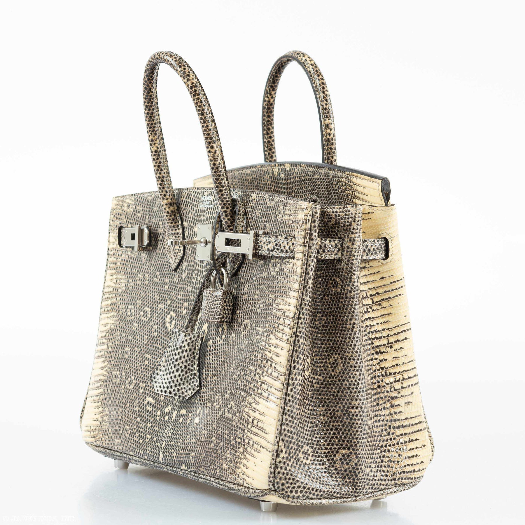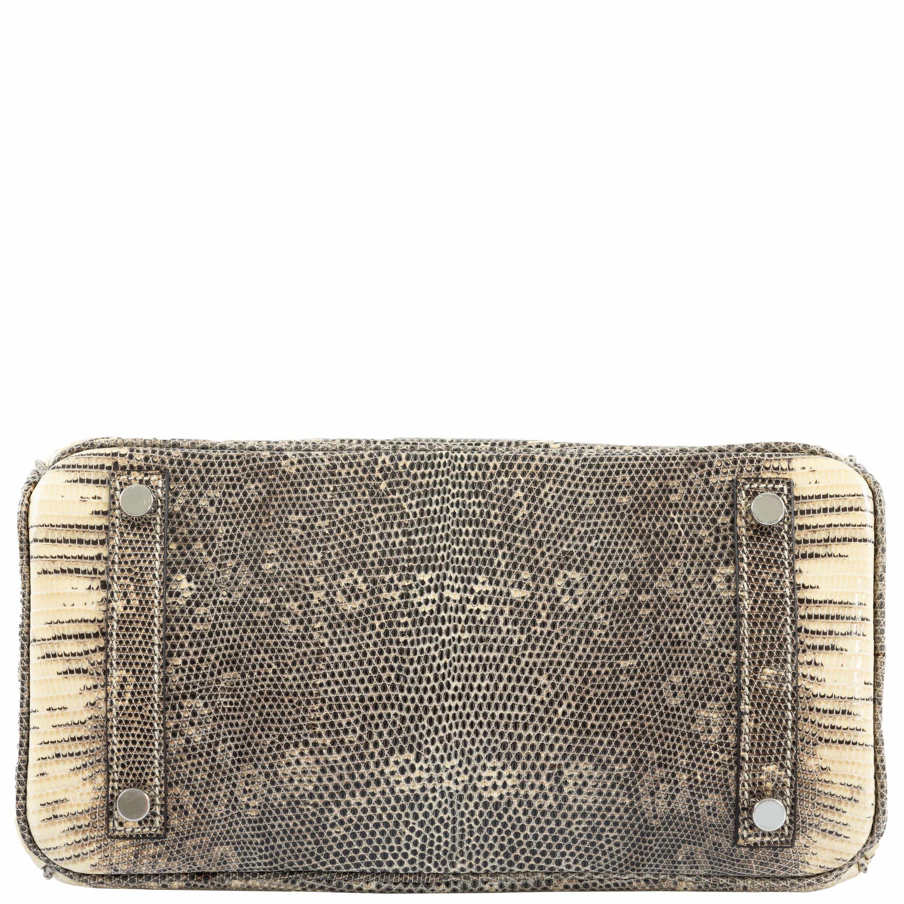 Lizard bags are extremely rare to find, as Hermes requires rigid standards of the skins used by their craftsmen. This fantastic lizard Birkin may have the most striking effect of any lizard bag in the world. The Ombre effect is a symmetrical and stunning pattern that emphasizes the delicacy of the lizard scales. This is truly a bag for the most discerning collector - a once in a lifetime purchase. The interior is parchment chèvre leather lining with one slip pocket and one zip pocket.
