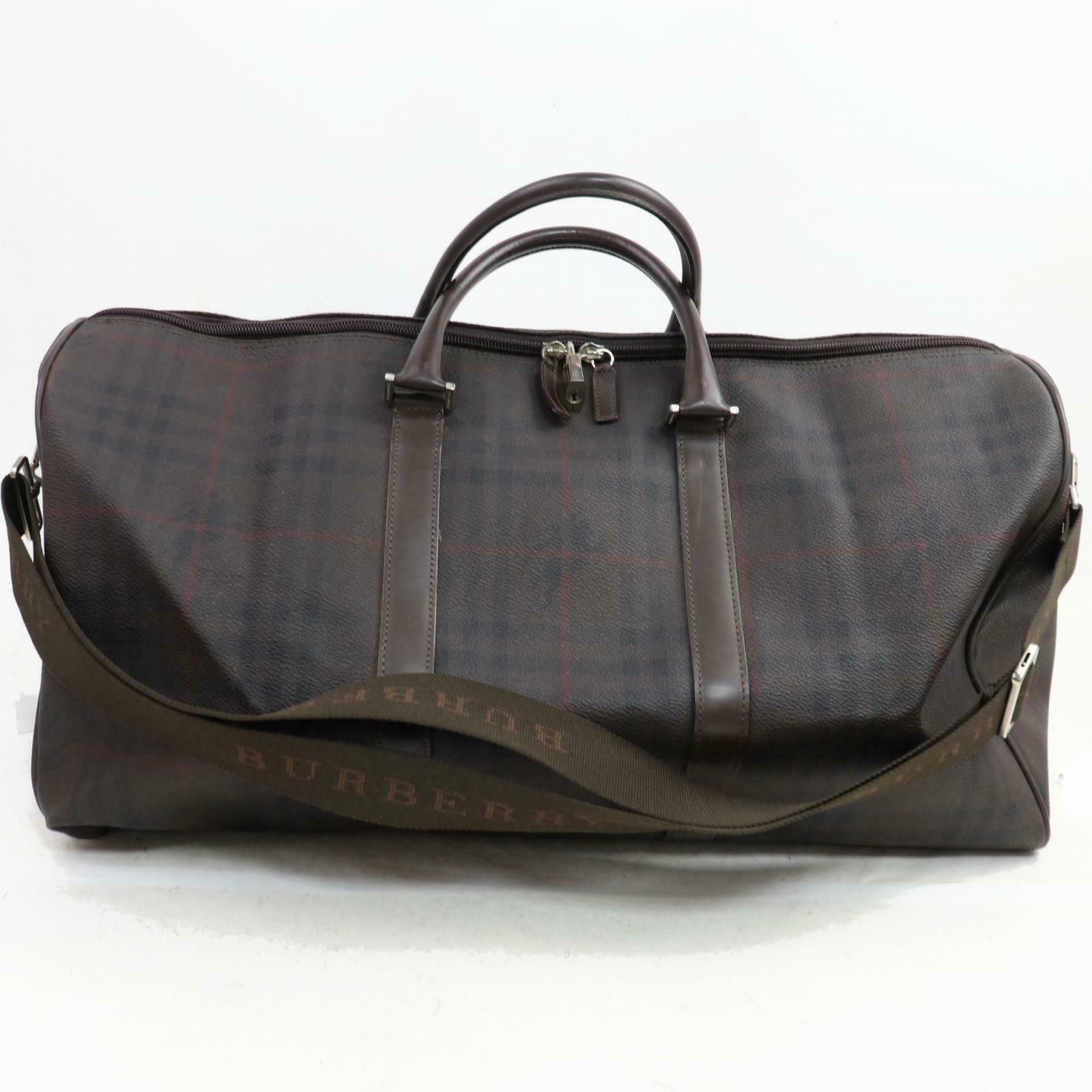This is an authentic Burberry London Boston Bag Dark Brown PVC Handbag. All photos are of actual Burberry handbag being sold. This item is in good condition, and will have visible signs of wear and/or use. Please view photos carefully for details. Pay close attention to sizes and measurements. Dimensions (HxWxD): 9.84" H x 9.44" W x 20.4" D. This item ships through LuxeDH from Japan - expect delivery within 4-8 business days.