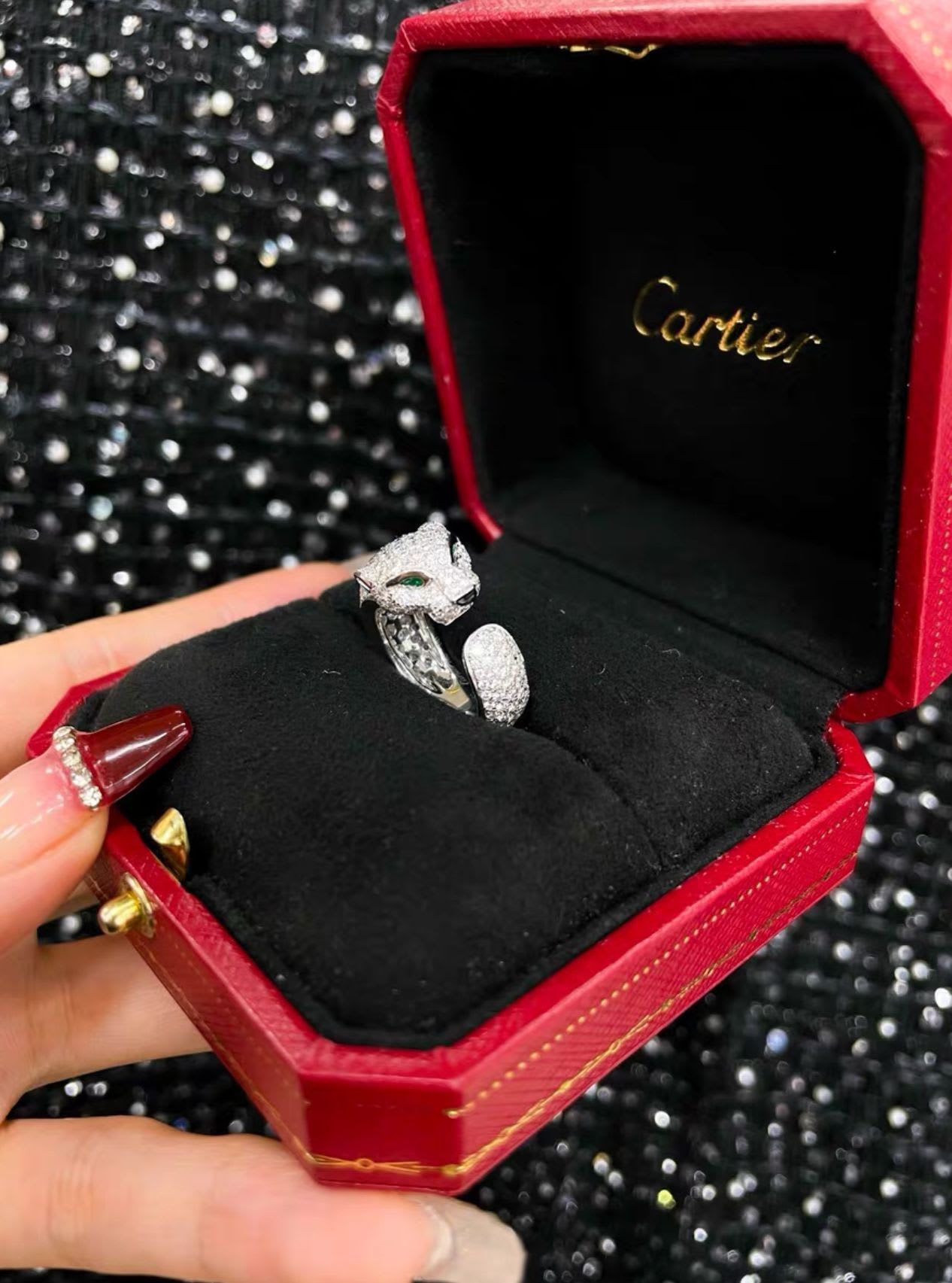 Basically brand new, size 50, the eyes of the leopard are inlaid with emeralds.