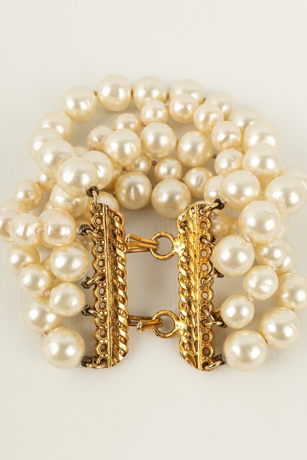 CHANEL - (Made in France) Bracelet de perles nacrées et fermoir en métal doré. Bijou datant des années 1980.