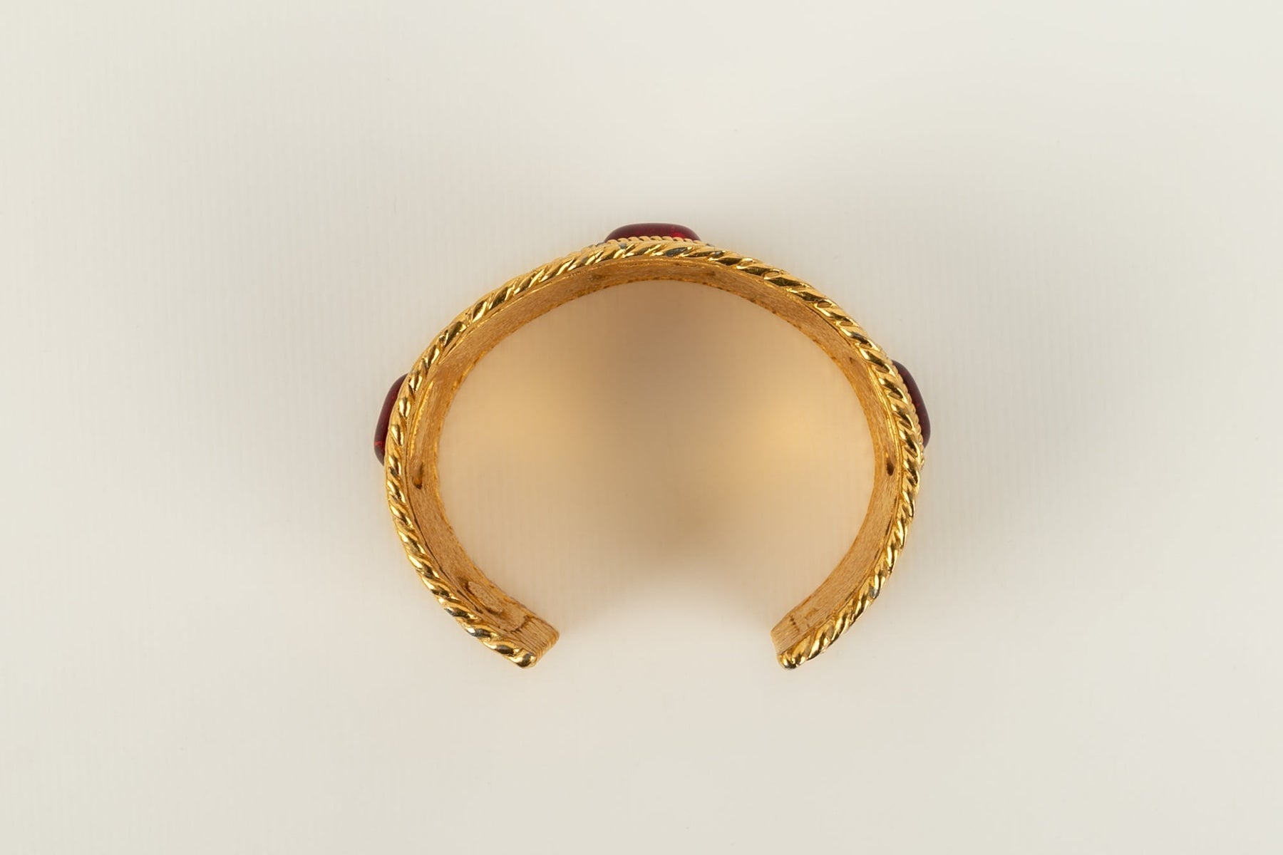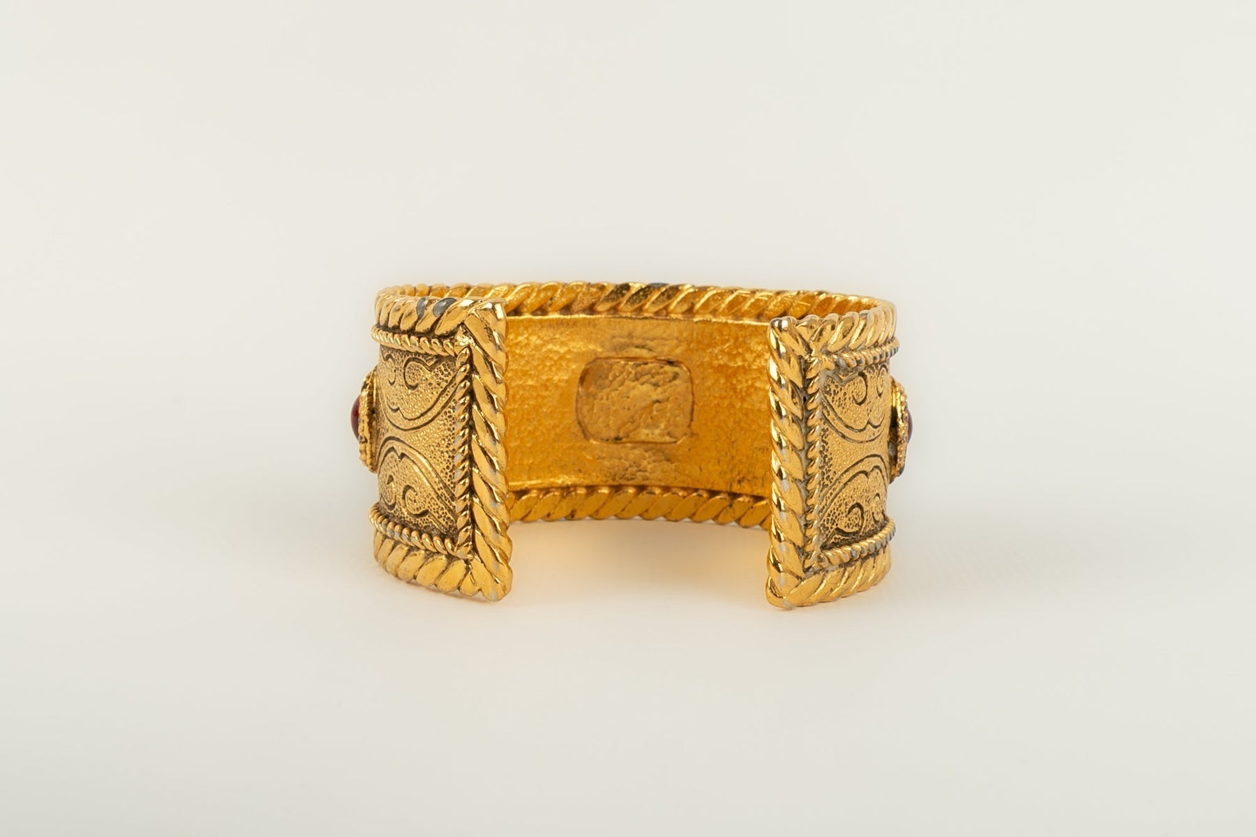 CHANEL -Bracelet en métal doré et pâte de verre rouge. Collection 1985.
