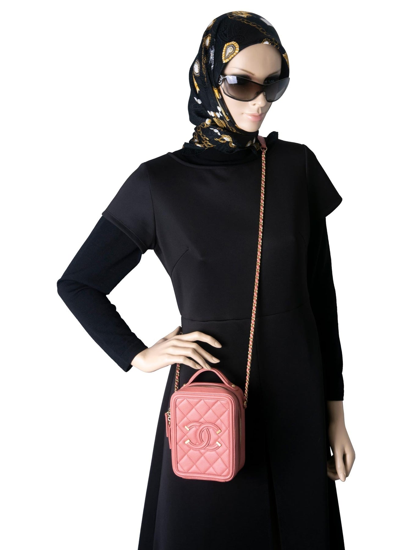 Chanel Caviar Quilted CC North South Filigree Vanity Case Pink