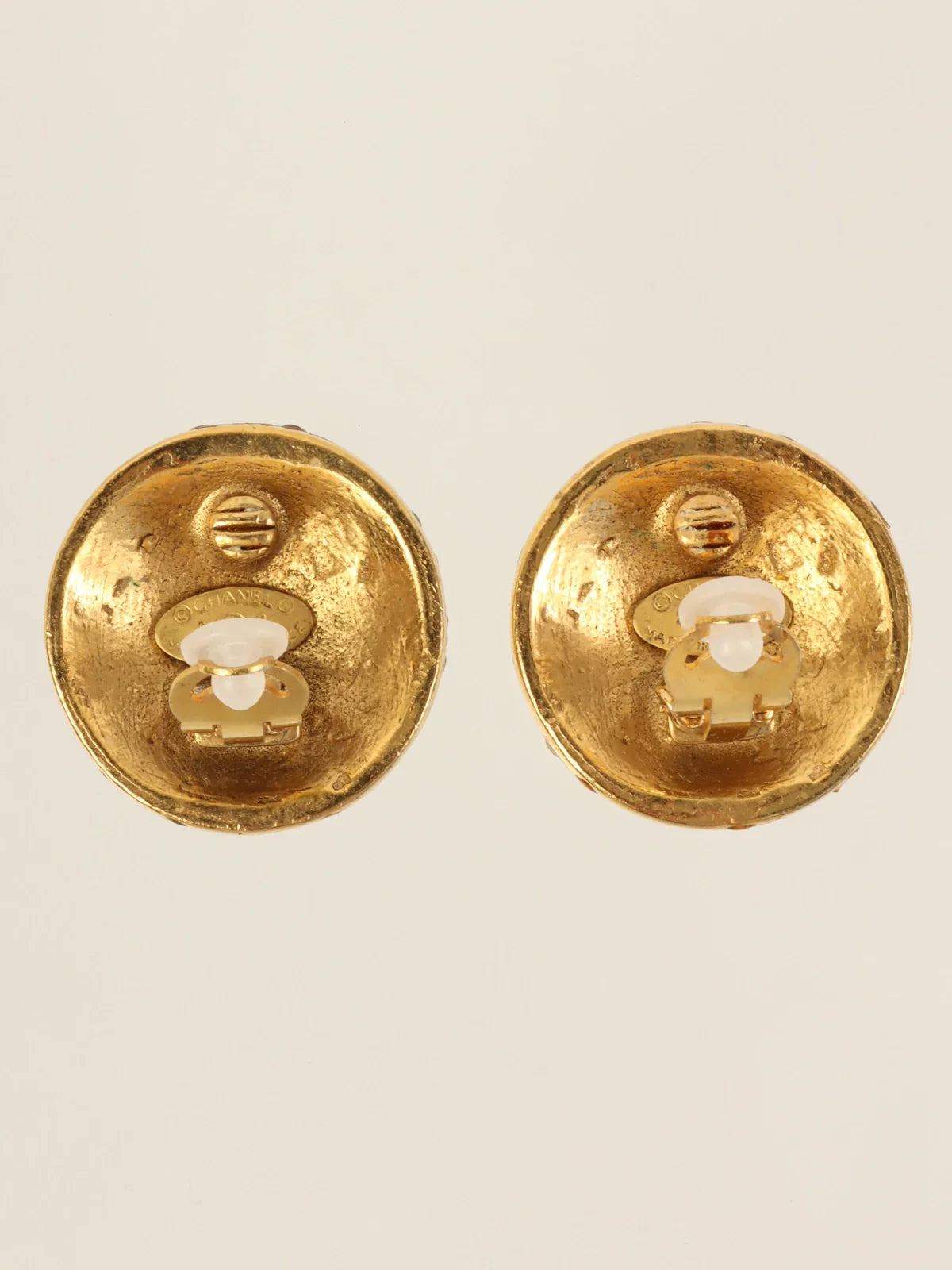Chanel 1988 Made Round Cc Mark Rhinestone Earrings Gold