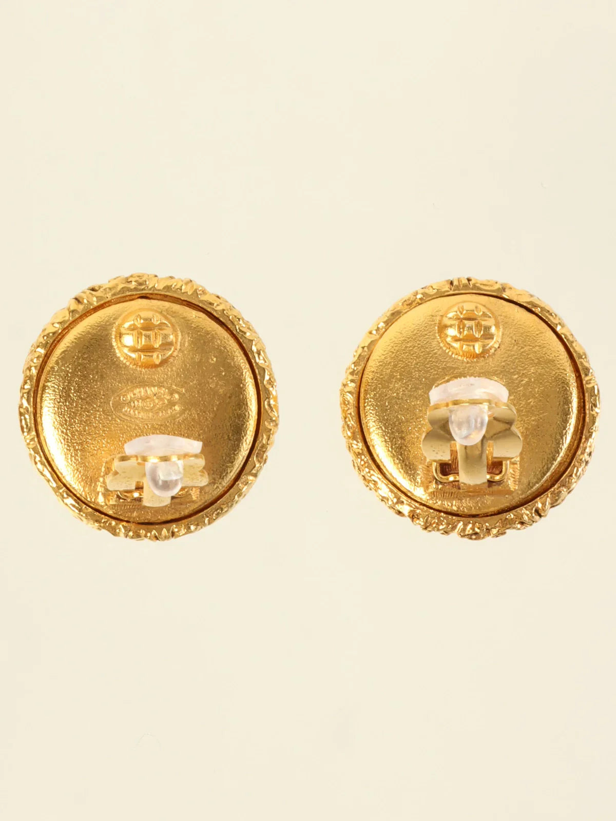 Chanel 1993 Made Round Cc Mark Earrings Gold/Black