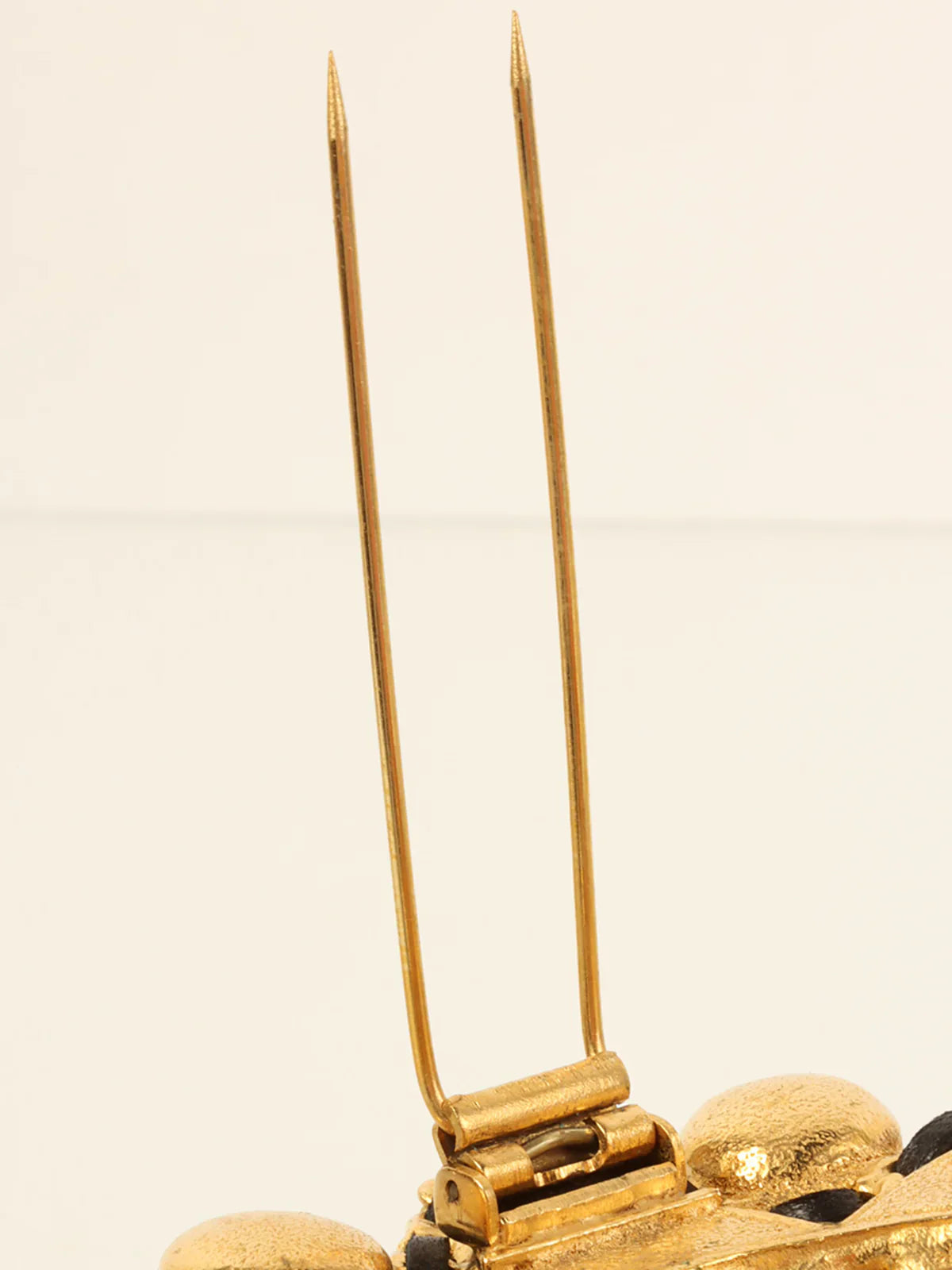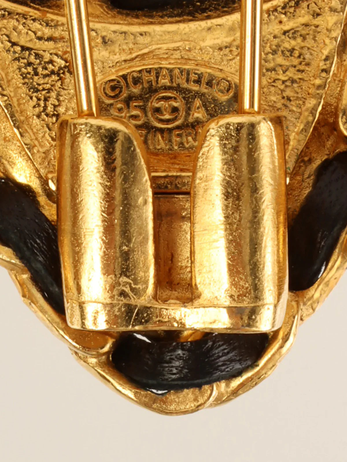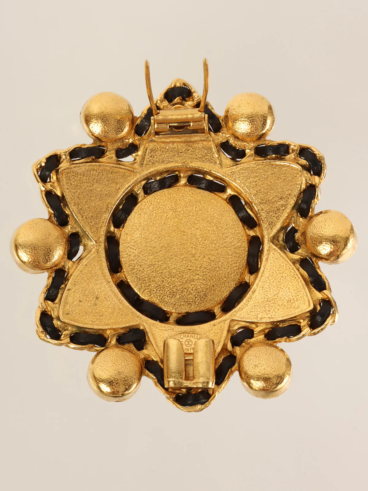 Chanel 1995 Made Gripoix Edge Chain Desing Brooch Gold/Black/Red/Blue