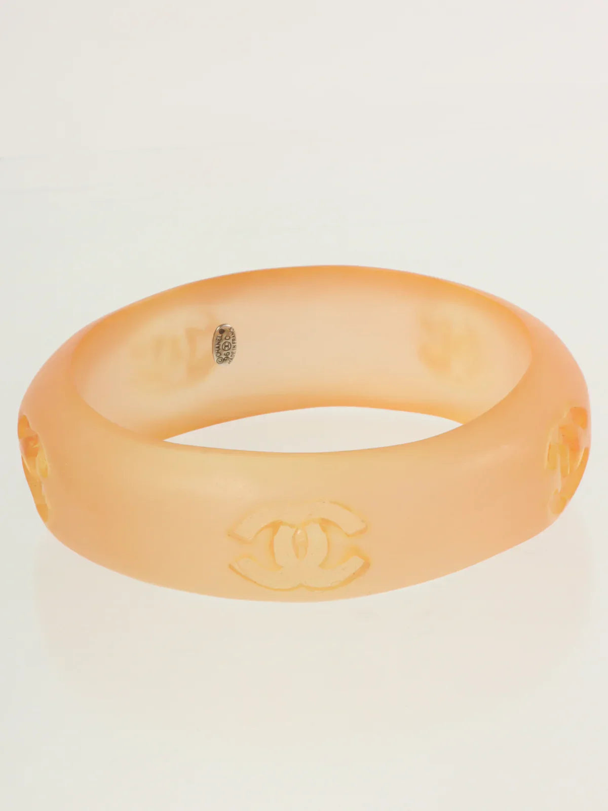 CHANEL 1996 Made Cc Mark Bangle Clear/Orange