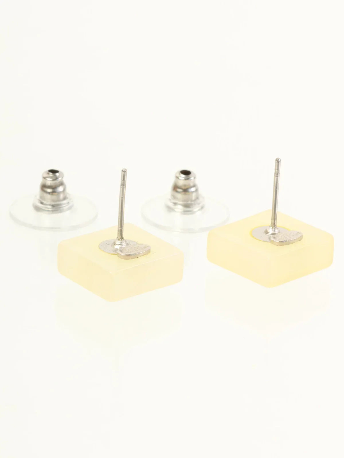 CHANEL 2000 Made Square Cc Mark Pierced Earrings Shell/White