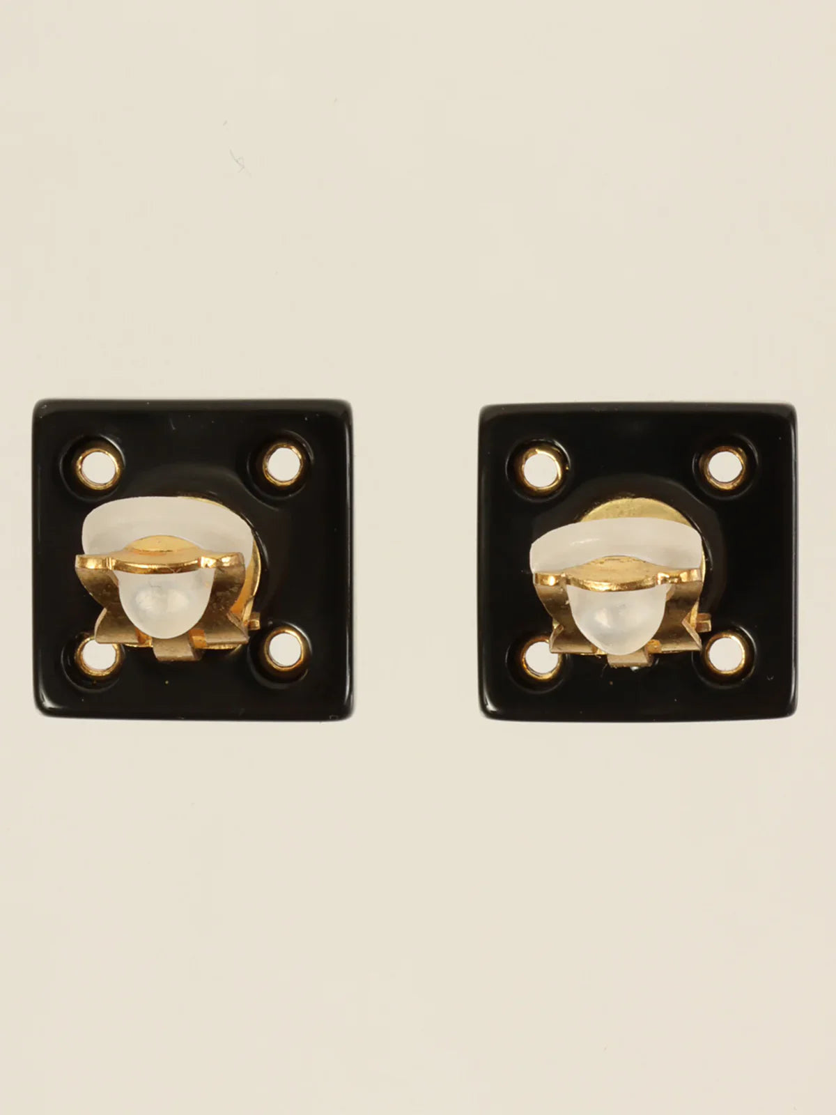 Chanel 2001 Made Square Punching Cc Mark Earrings Black/Gold