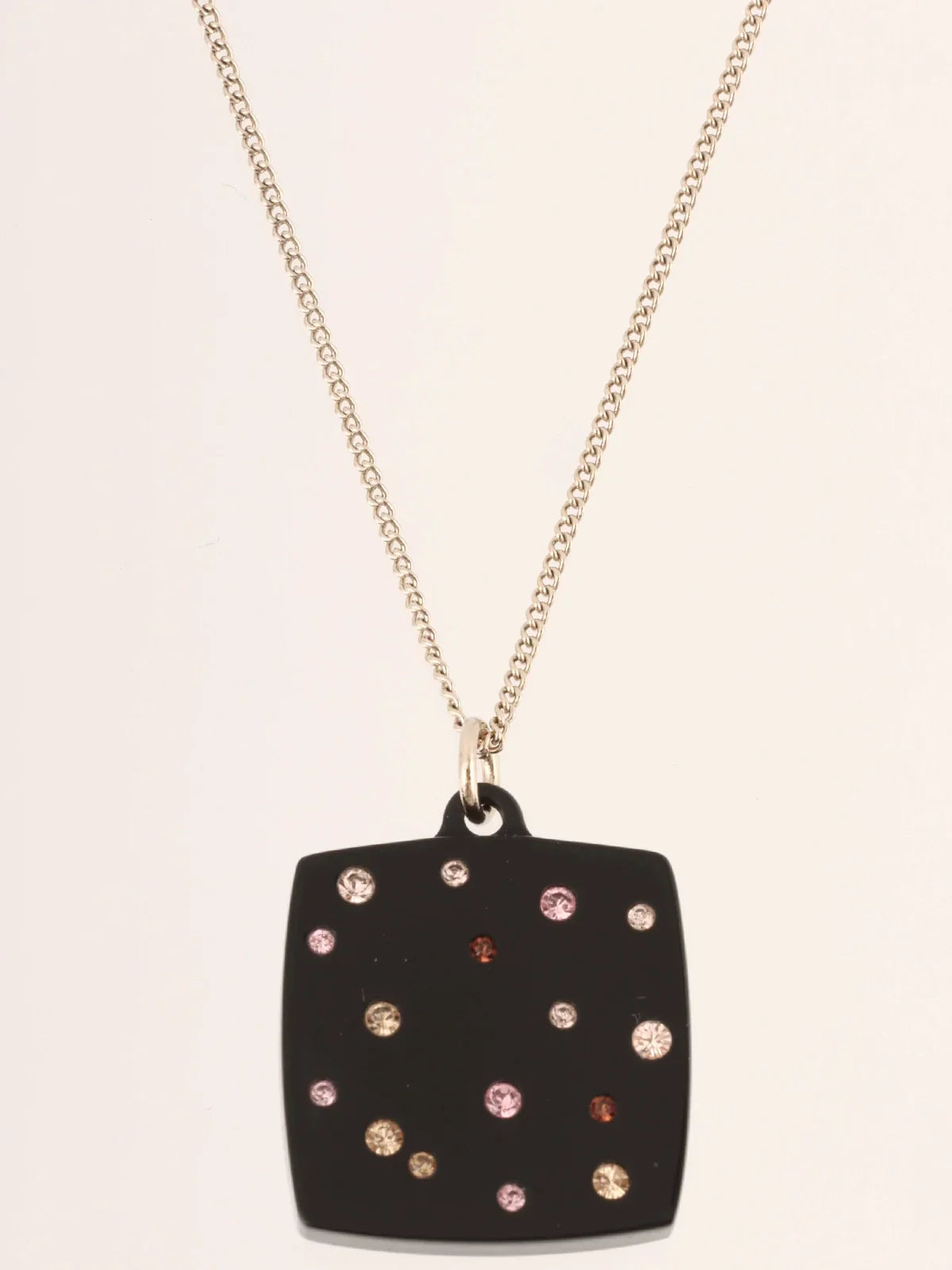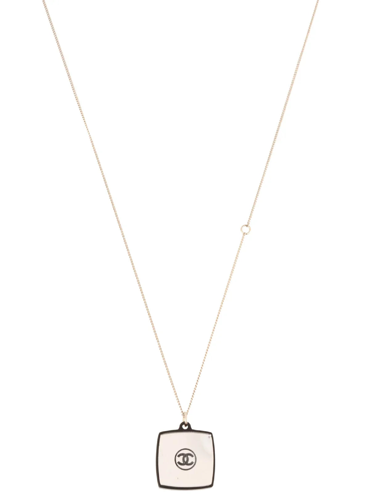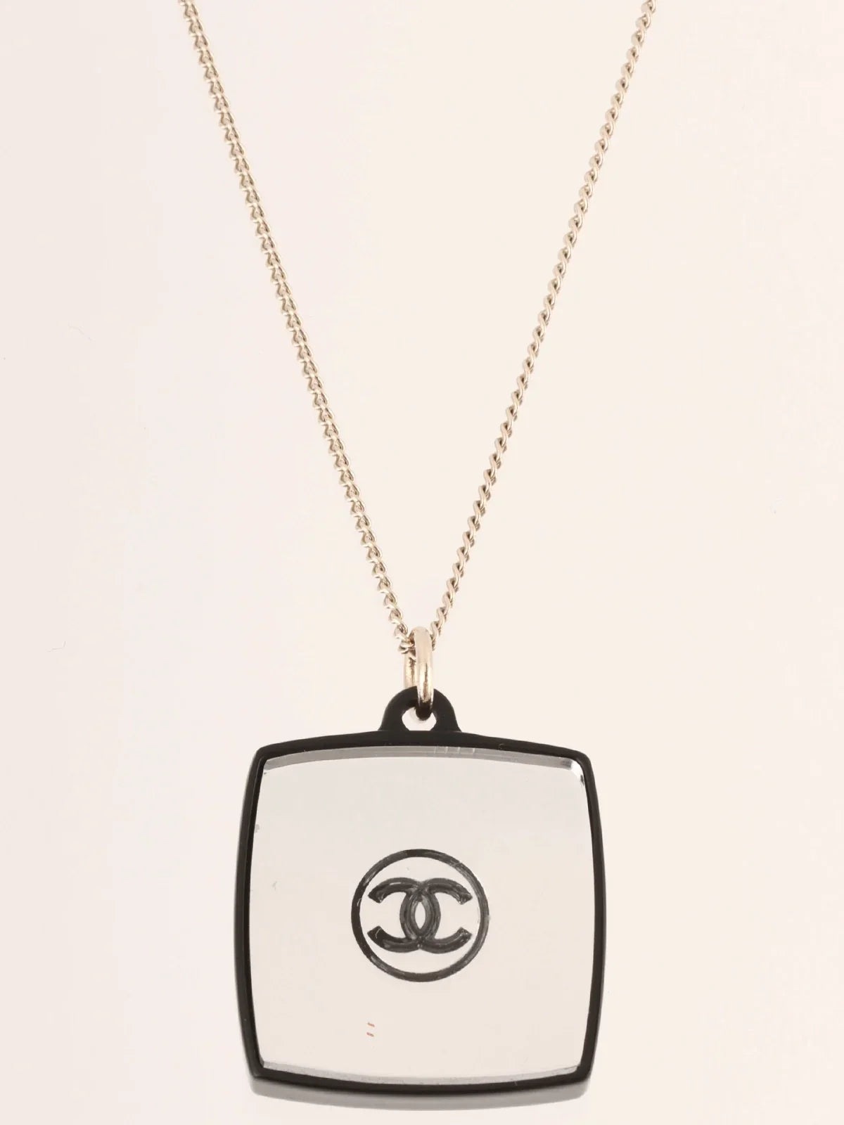 CHANEL 2008 Made Square Mirror Cc Mark Rhinestone Necklace Black