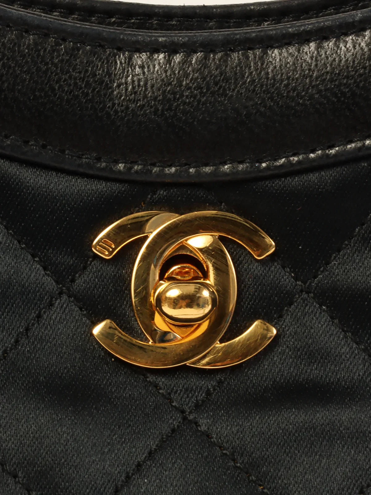 Chanel Around 1990 Made Leather Satin Combination Turn-Lock 2Way Chain Bag Black