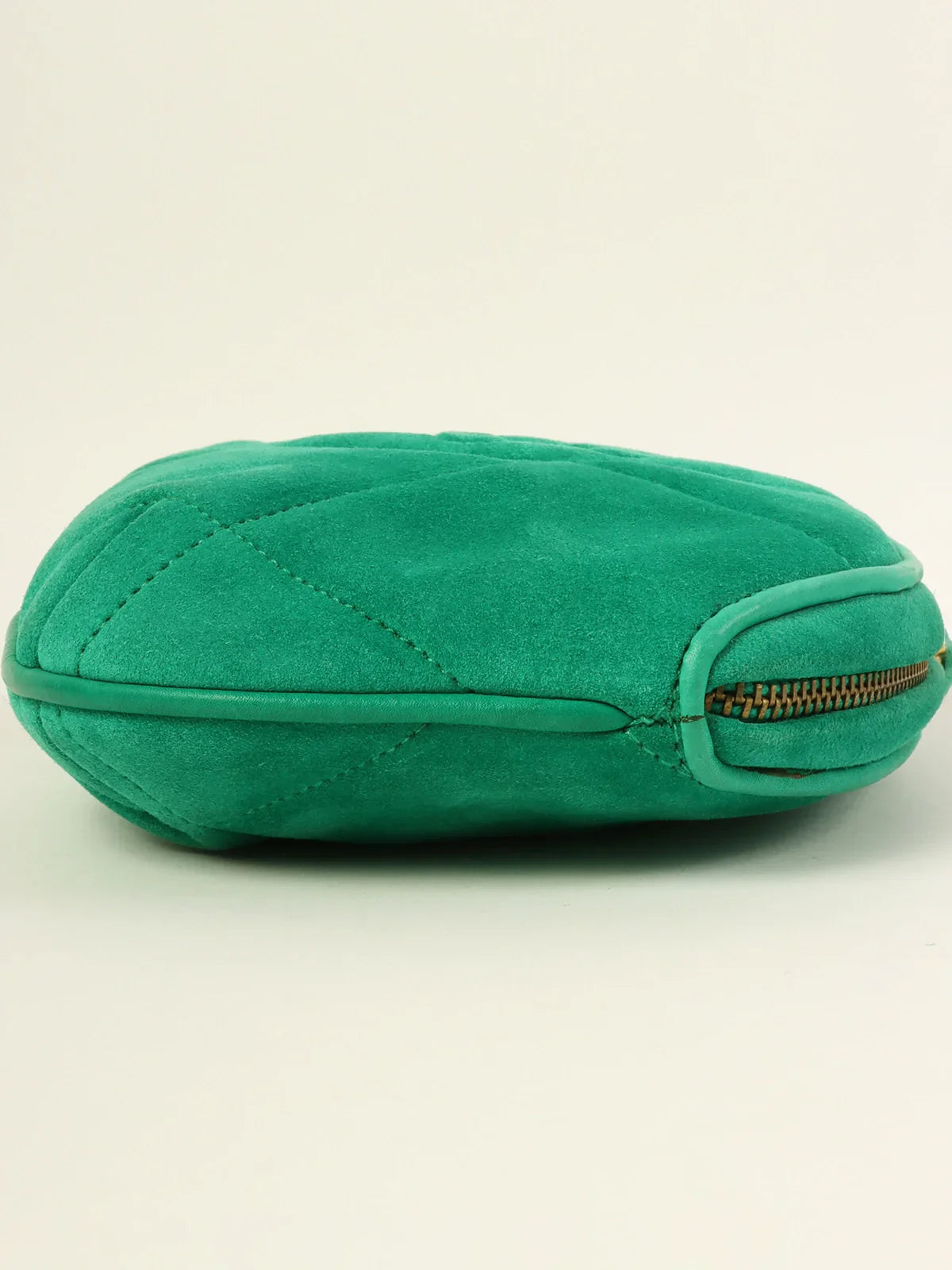CHANEL Around 1990 Made Suede Cc Mark Stitch Tassel Clutch Bag Cobalt Green