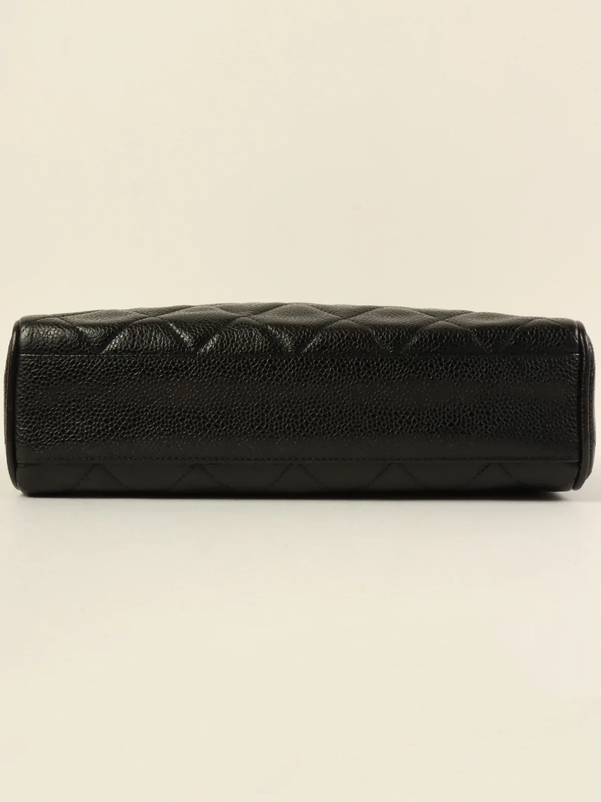 CHANEL Around 1992 Made Caviar Skin Cc Mark Stitch Chain Shoulder Bag Black