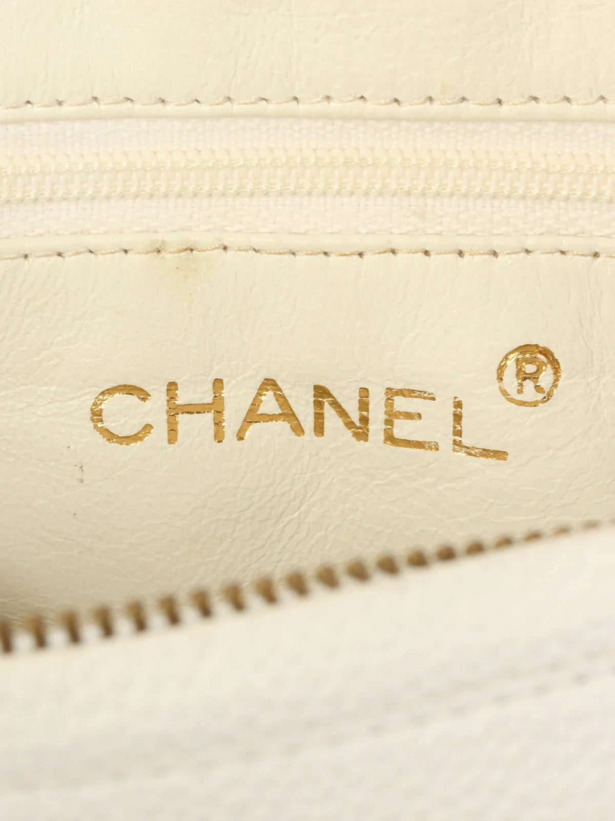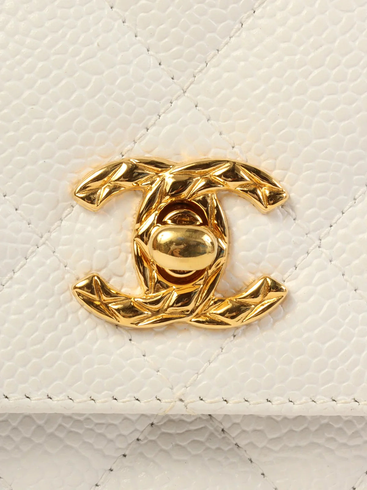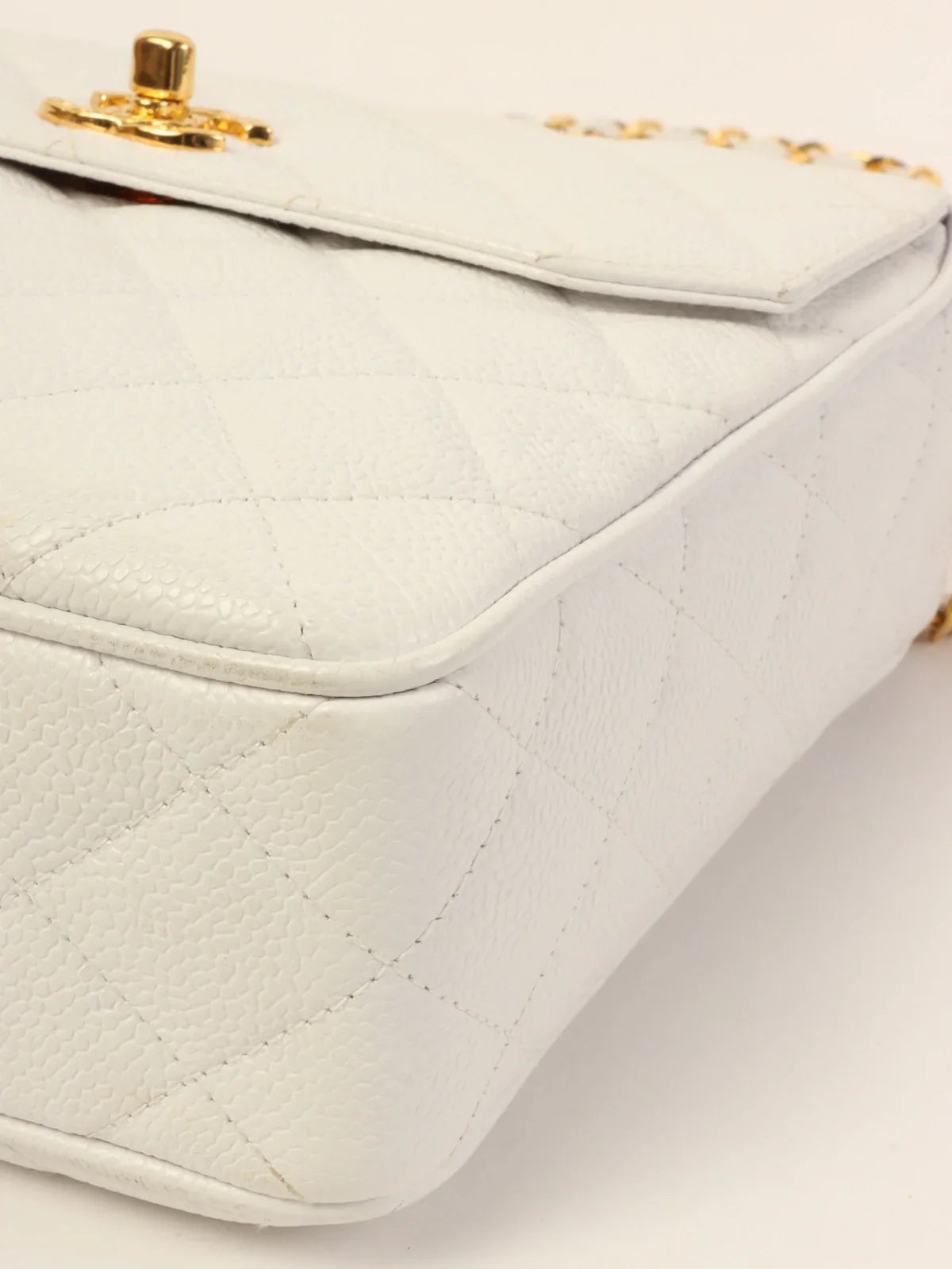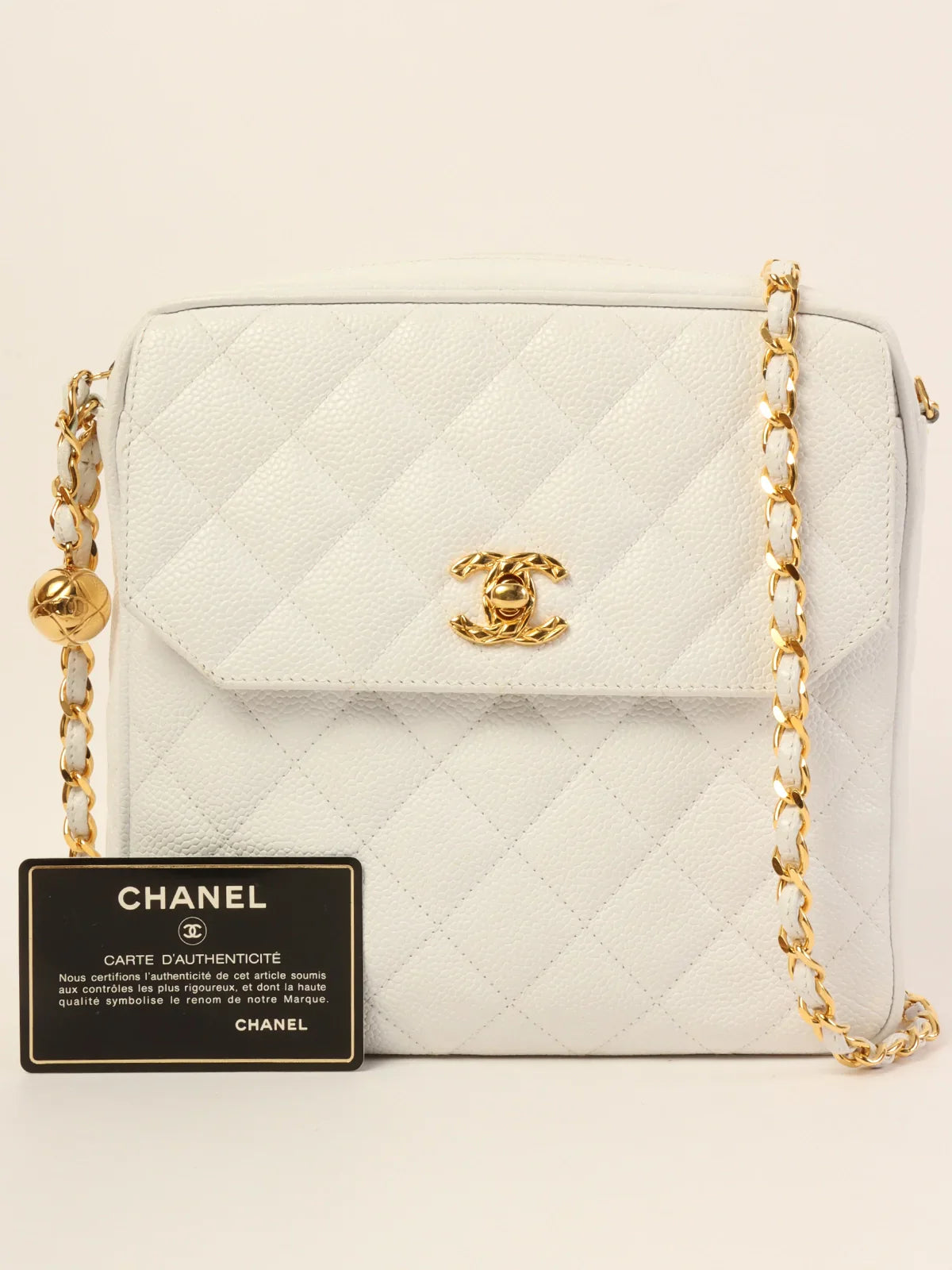 CHANEL Around 1992 Made Caviar Skin Turn-Lock Ball Charm Chain Bag White