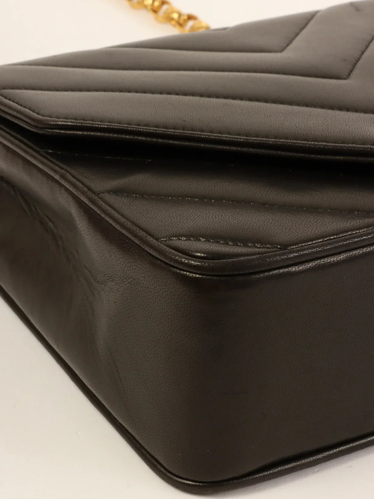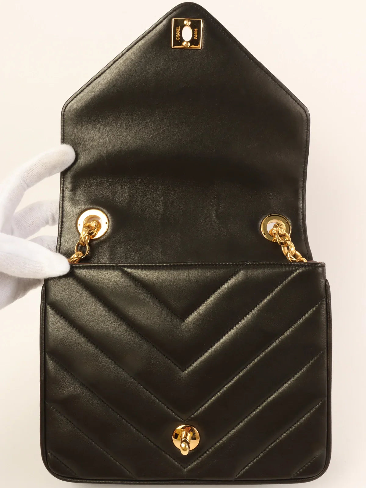 CHANEL Around 1992 Made Chevron Turn-Lock Bijoux Chain Bag Black