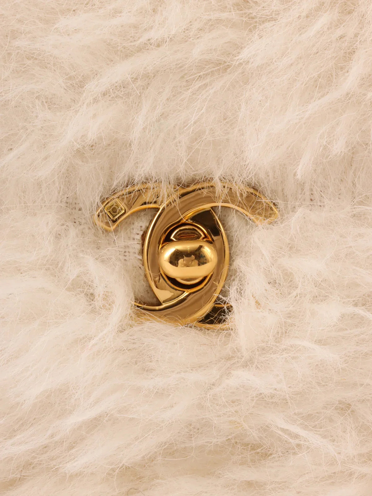 CHANEL Around 1992 Made Fur Turn-Lock Top Handle Bag Off White
