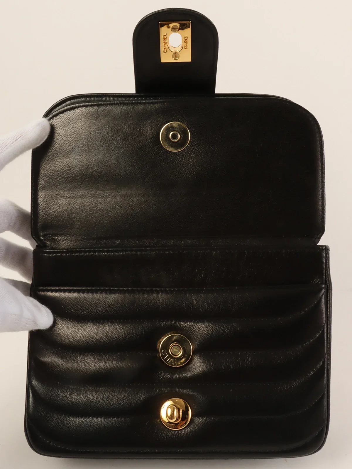 CHANEL Around 1992 Made Turn-Lock Shoulder Bag Mini Black