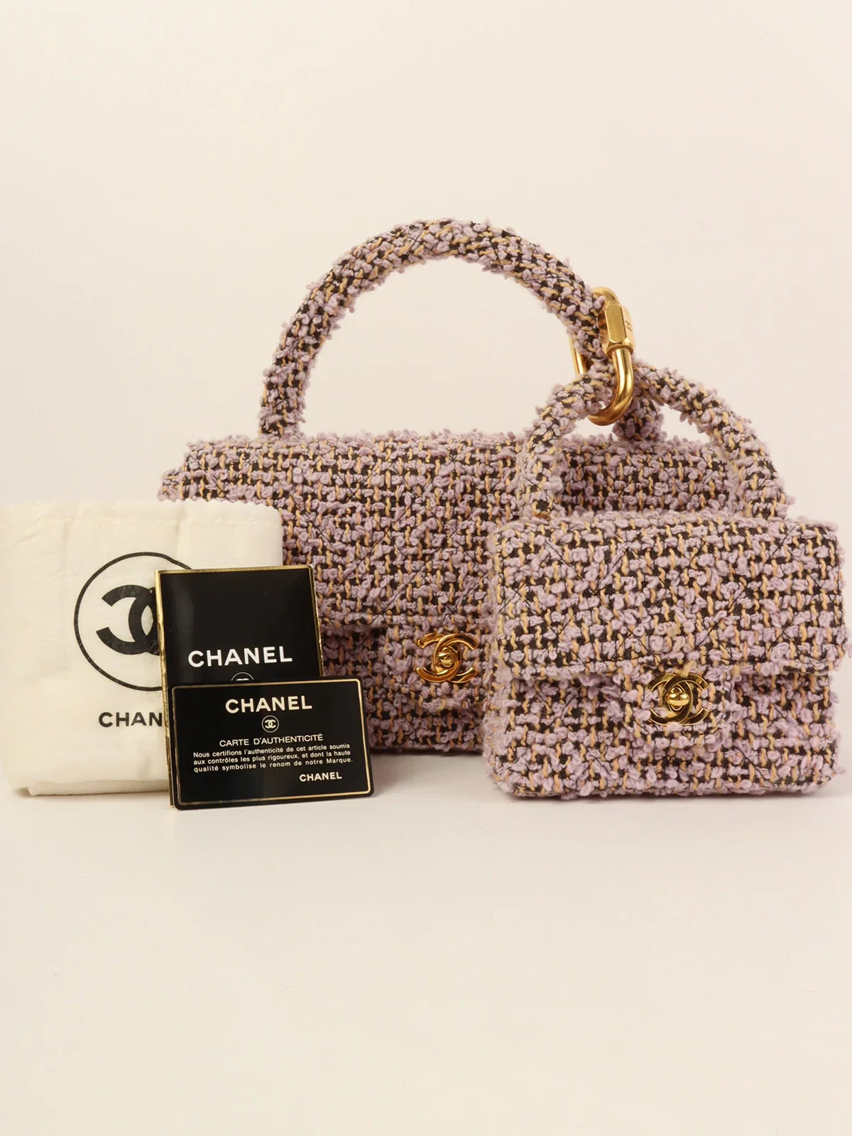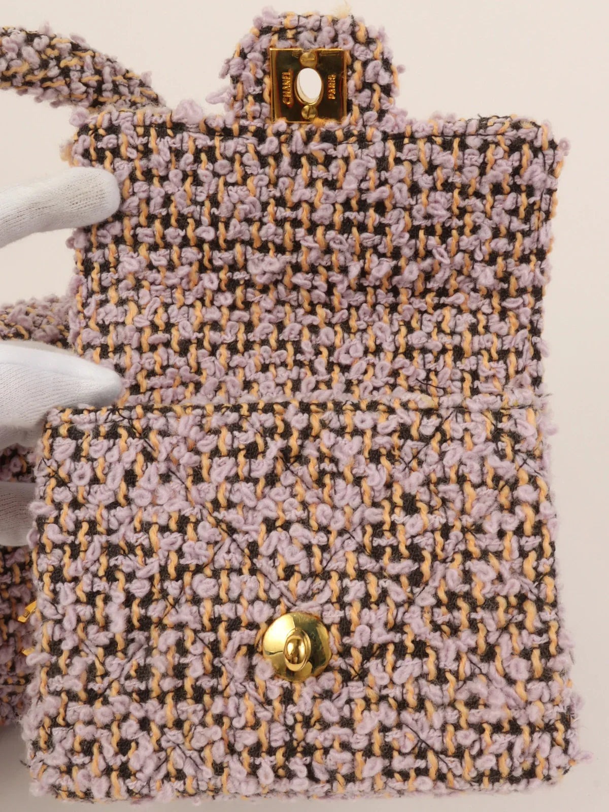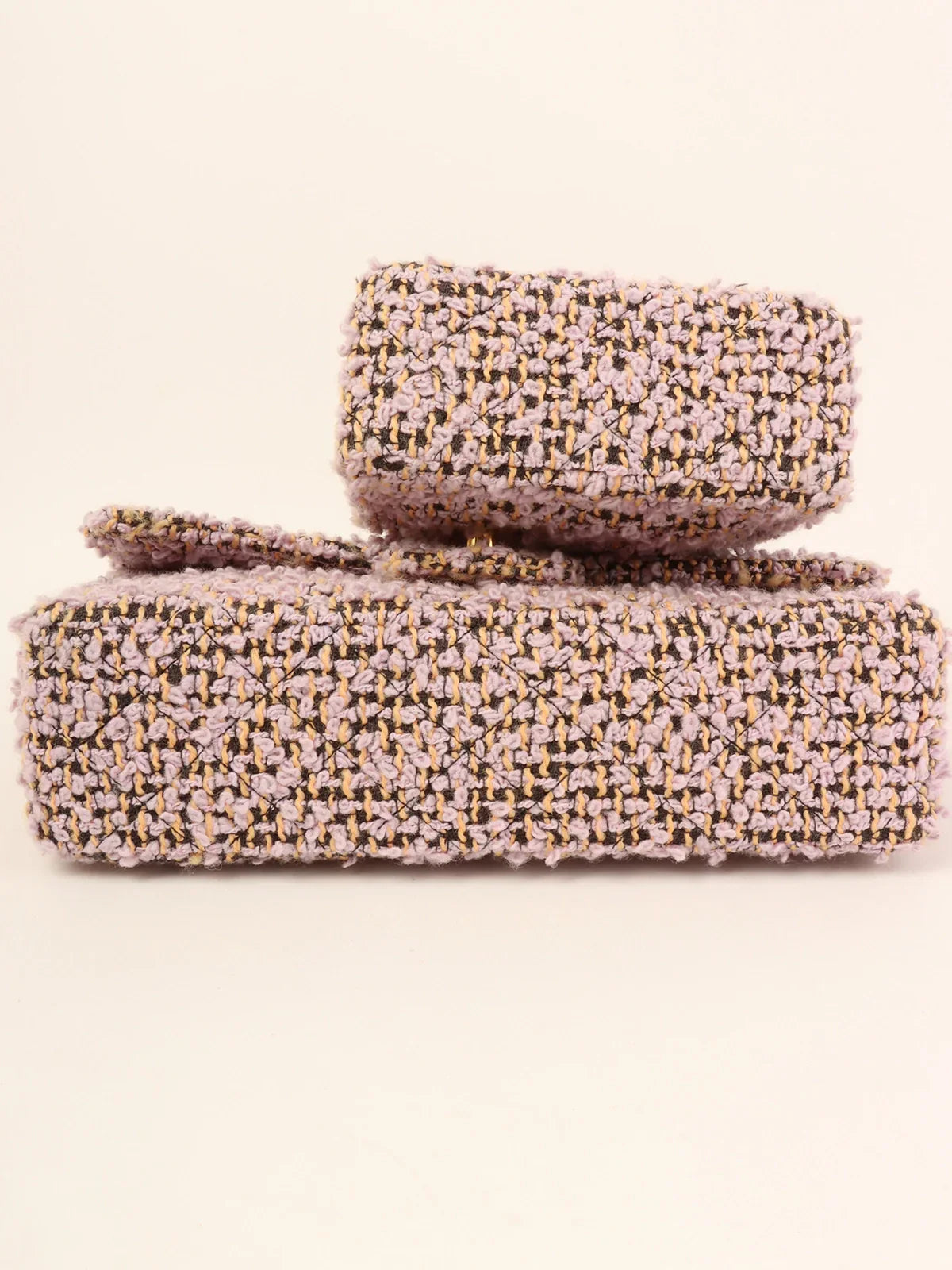 CHANEL Around 1992 Tweed Classic New Pair Top Handle Bag Purple/Multi