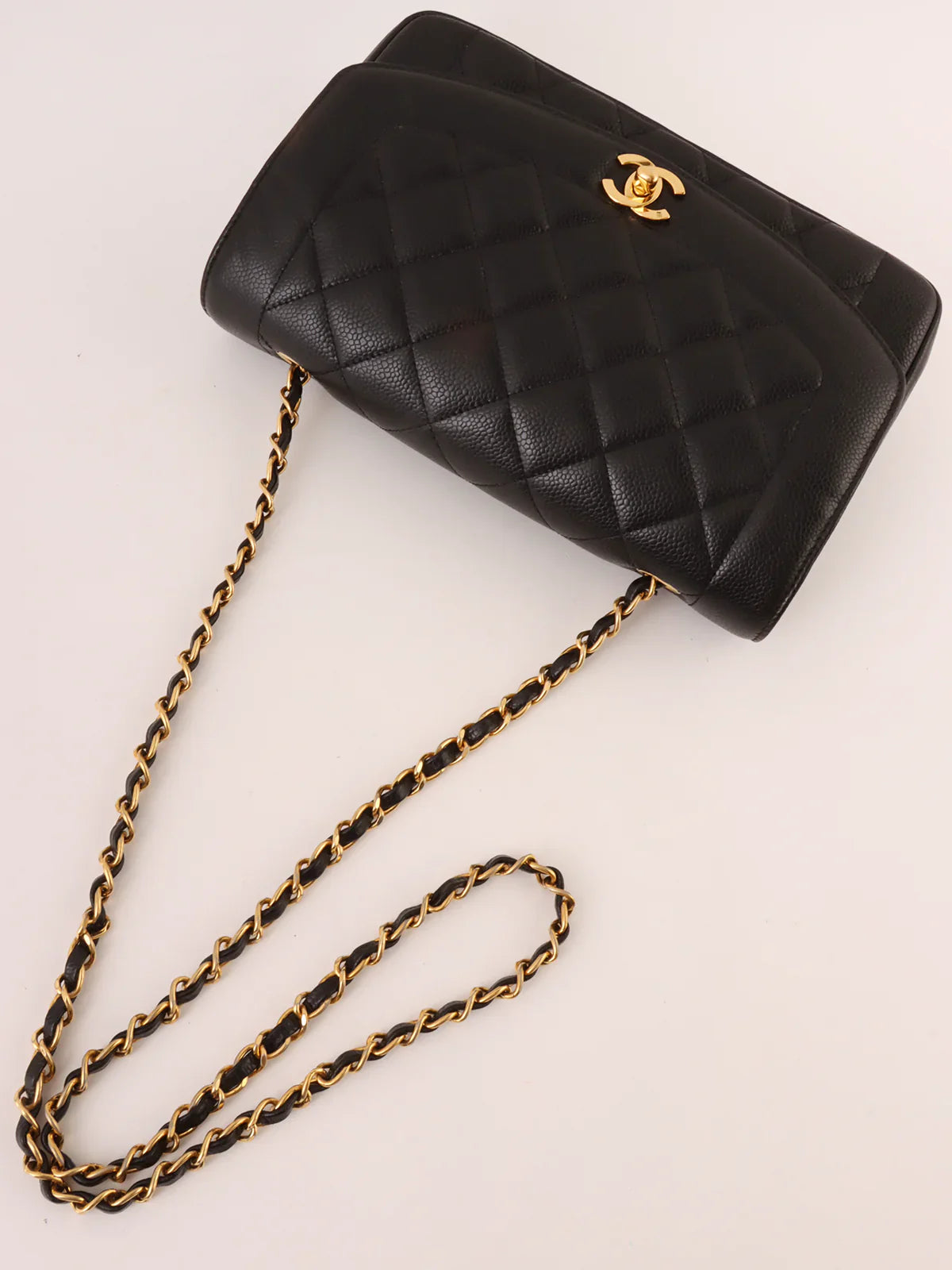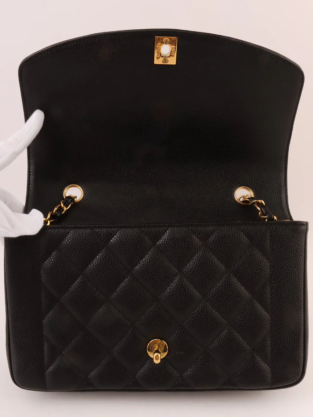 CHANEL Around 1995 Made Caviar Skin Diana New Chain Bag 25Cm Black