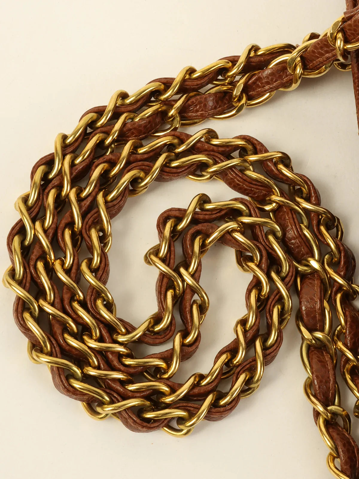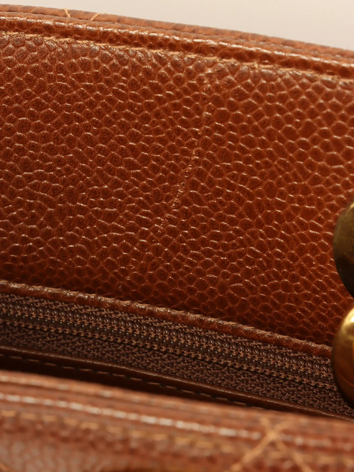 CHANEL Around 1995 Made Caviar Skin Turn-Lock Chain Tote Bag Brown