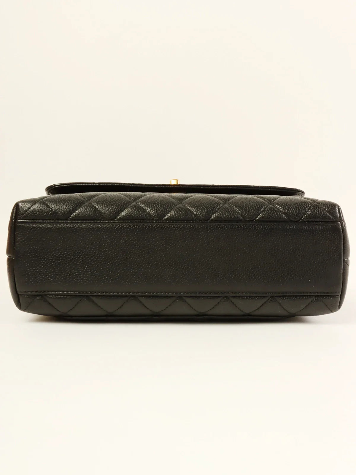 Chanel Around 1997 Made Caviar Skin Turn-Lock Top Handle Bag Black