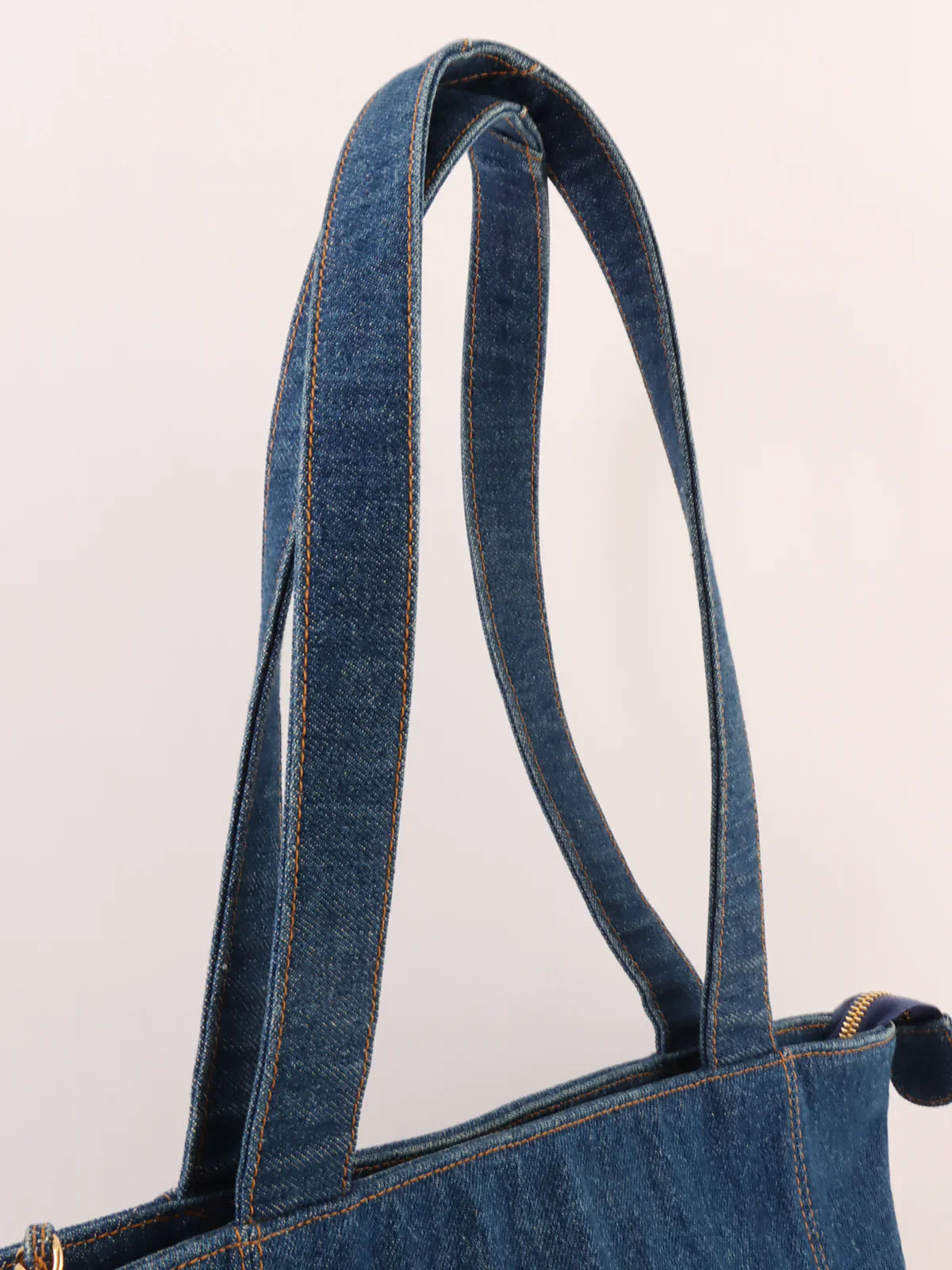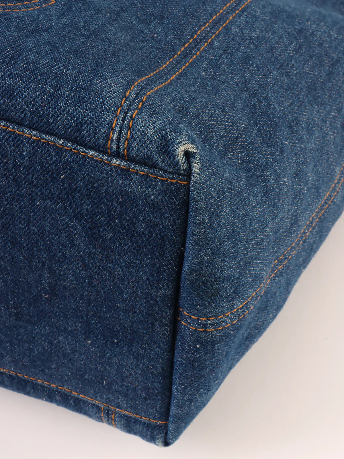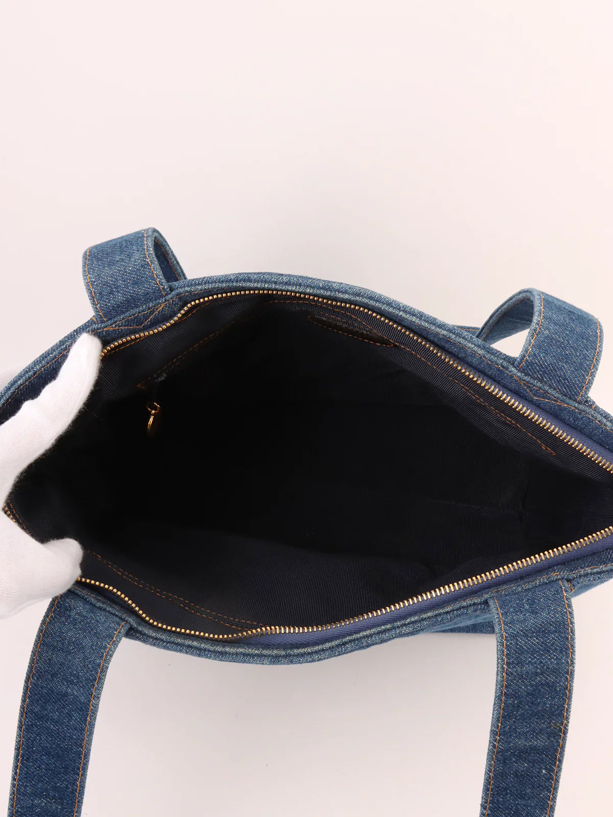CHANEL Around 1997 Made Denim Cc Mark Stitch Tote Bag Indigo