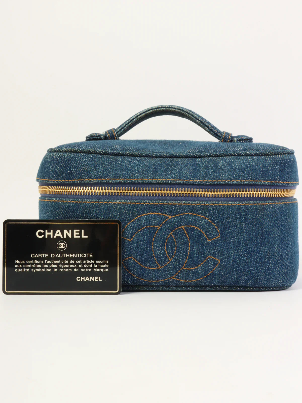 CHANEL Around 1997 Made Denim Cc Mark Stitch Vanity Indigo