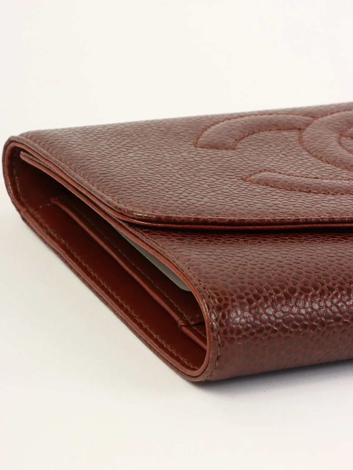 CHANEL Around 1998 Made Caivar Skin Cc Mark Stitch Wallet Brown
