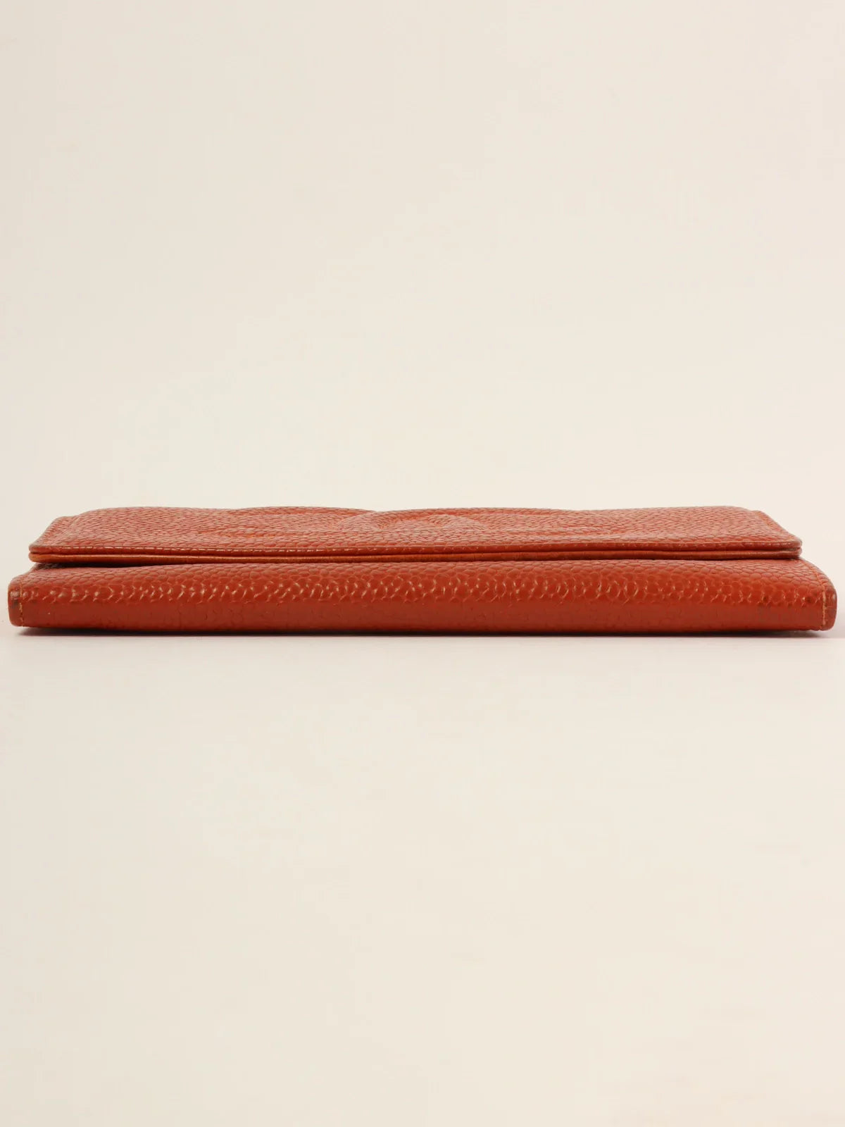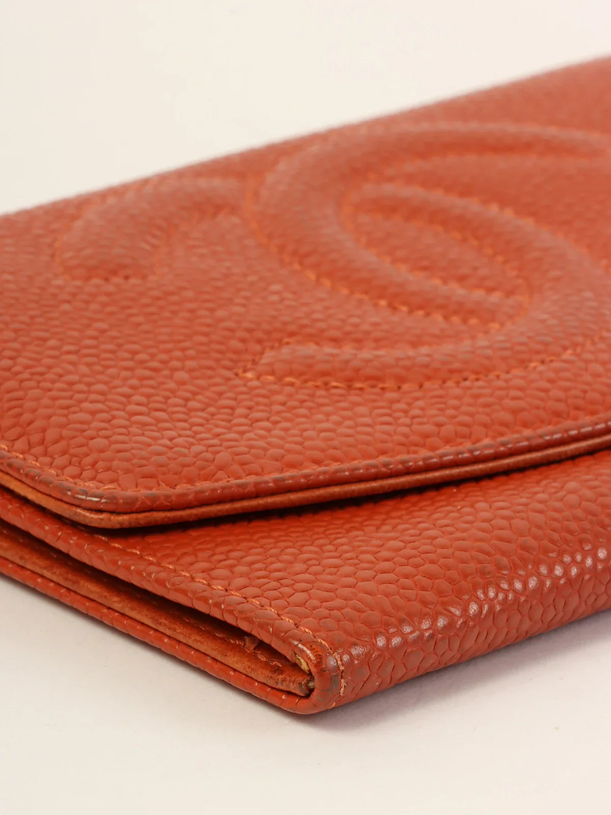 CHANEL Around 1998 Made Caviar Skin Cc Mark Stitch Wallet Orange