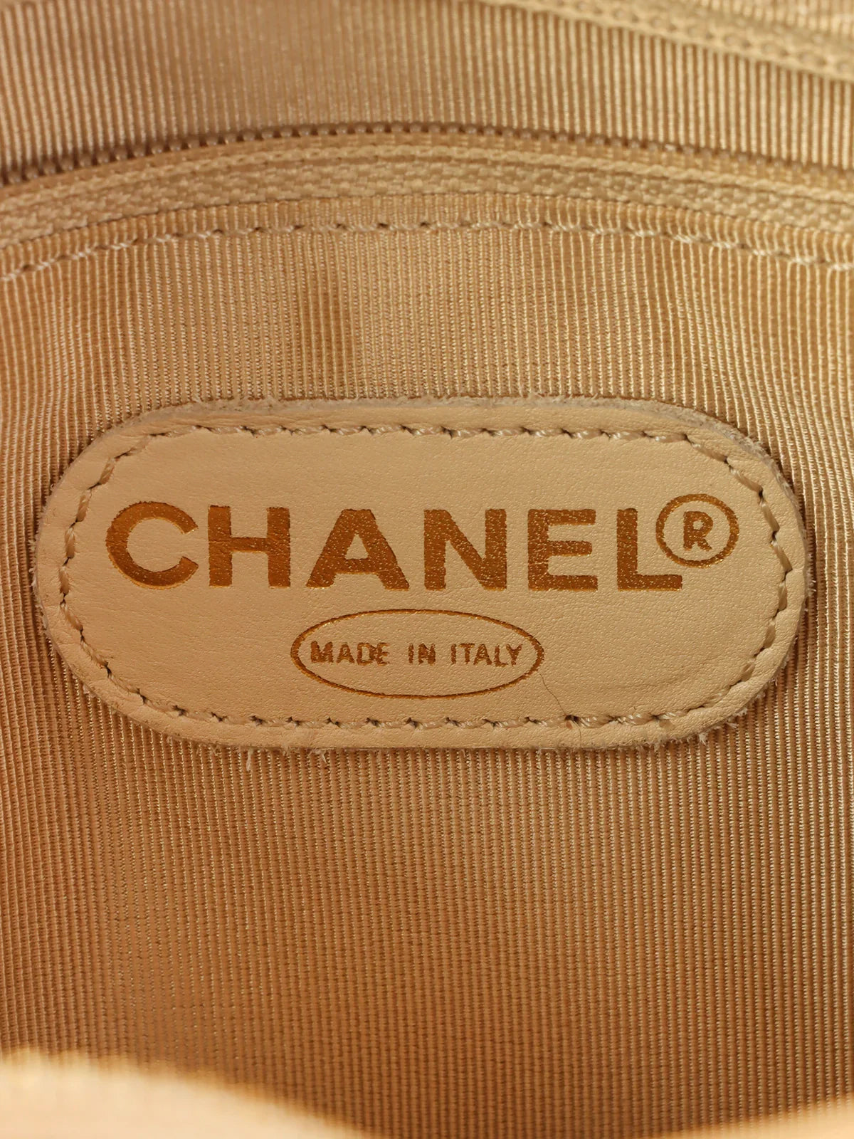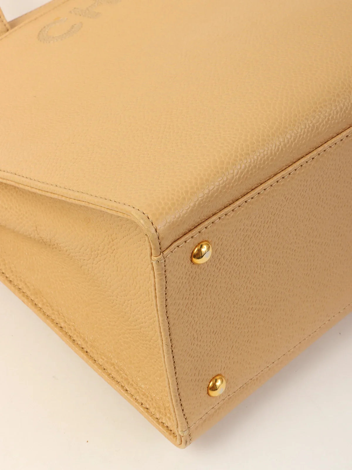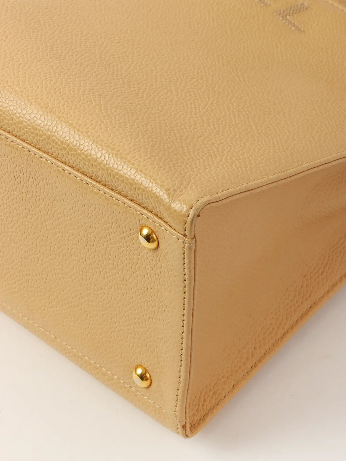 CHANEL Around 1998 Made Caviar Skin Logo Embroidered Tote Bag Beige