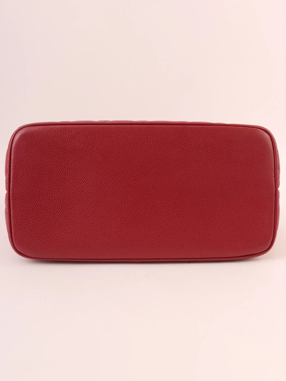 CHANEL Around 2000 Made Caivar Skin Cc Mark Stitch Revival Tote Bag Red