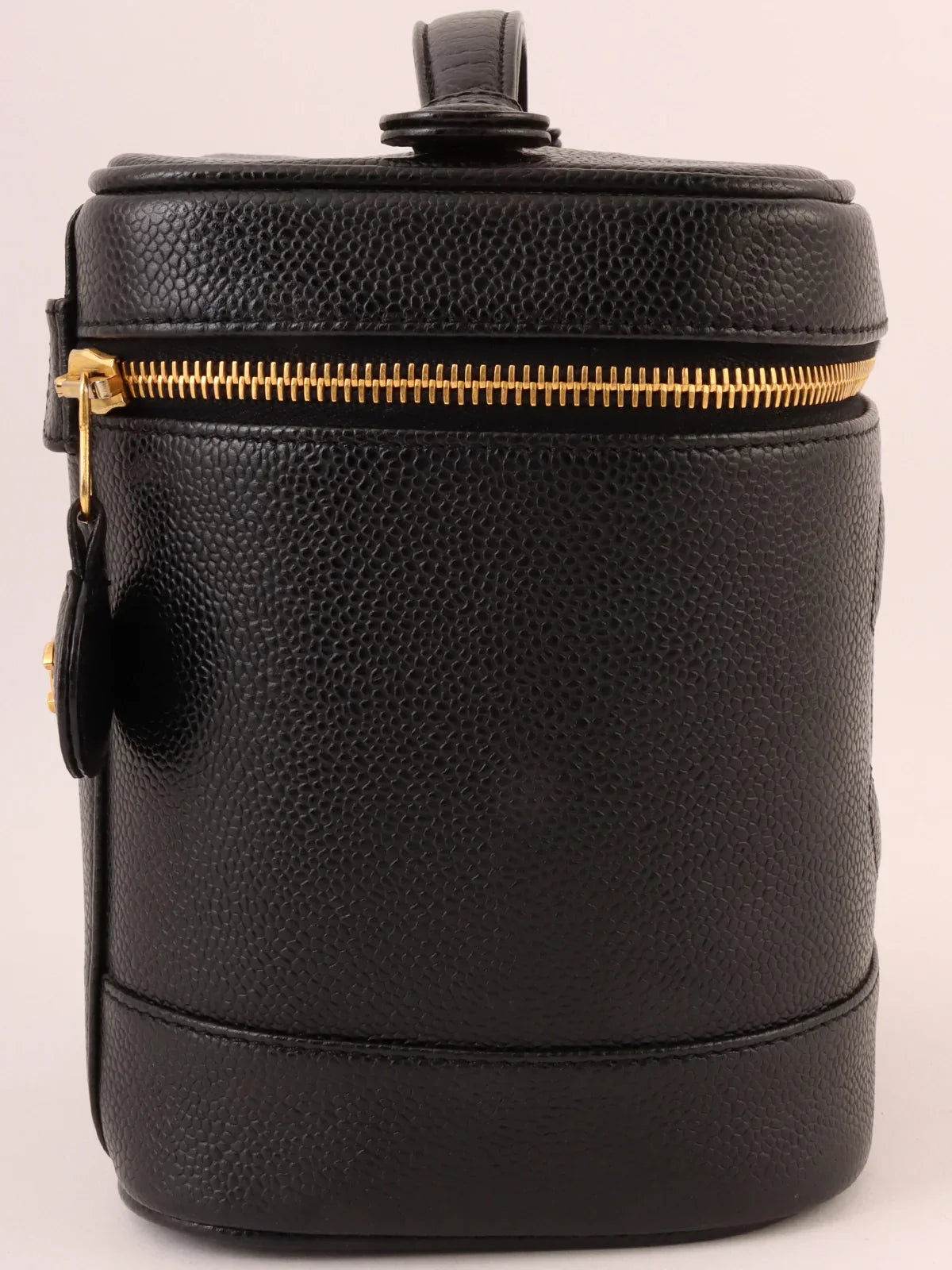 CHANEL Around 2000 Made Caviar Skin Cc Mark Stitch Vanity Black