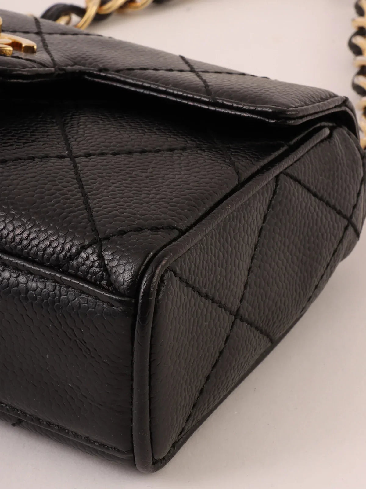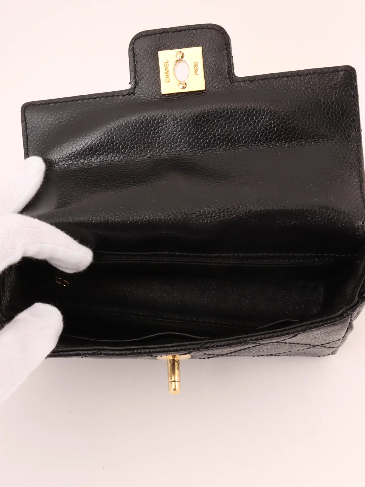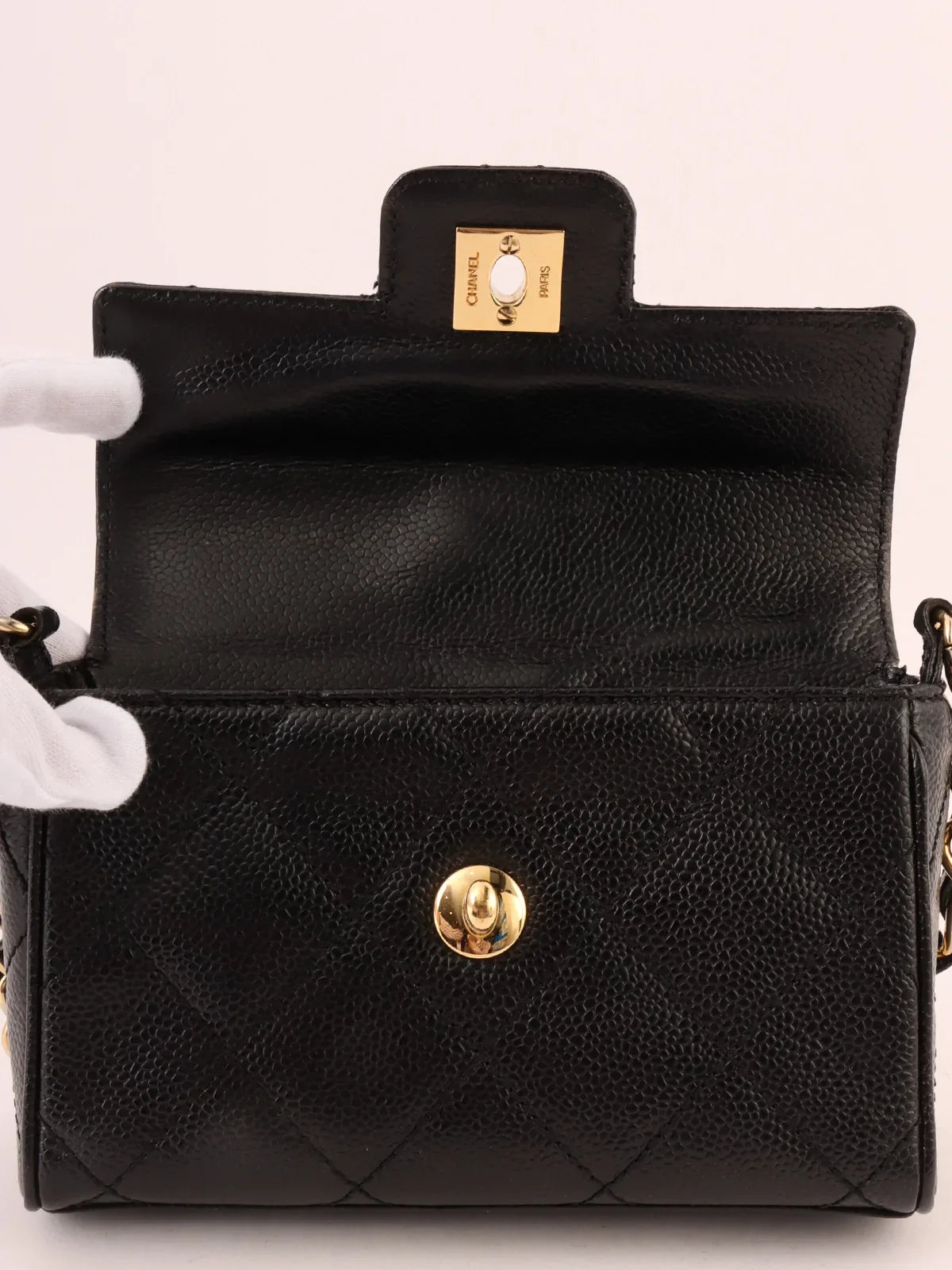CHANEL Around 2000 Made Caviar Skin Design New Turn-Lock Mini Chain Top Handle Bag Black