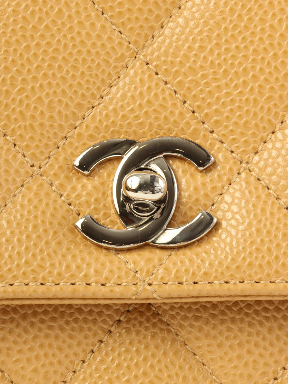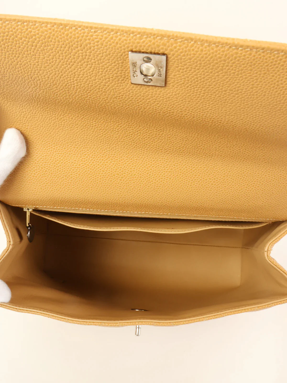 Chanel Around 2000 Made Caviar Skin Turn-Lock Top Handle Bag Beige