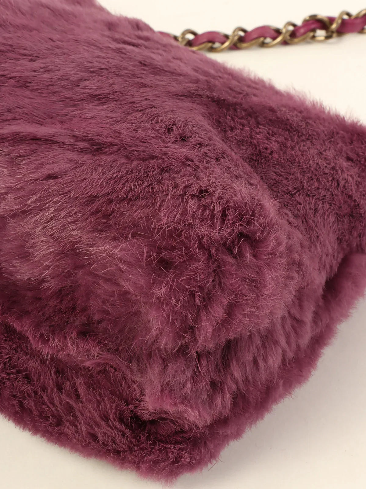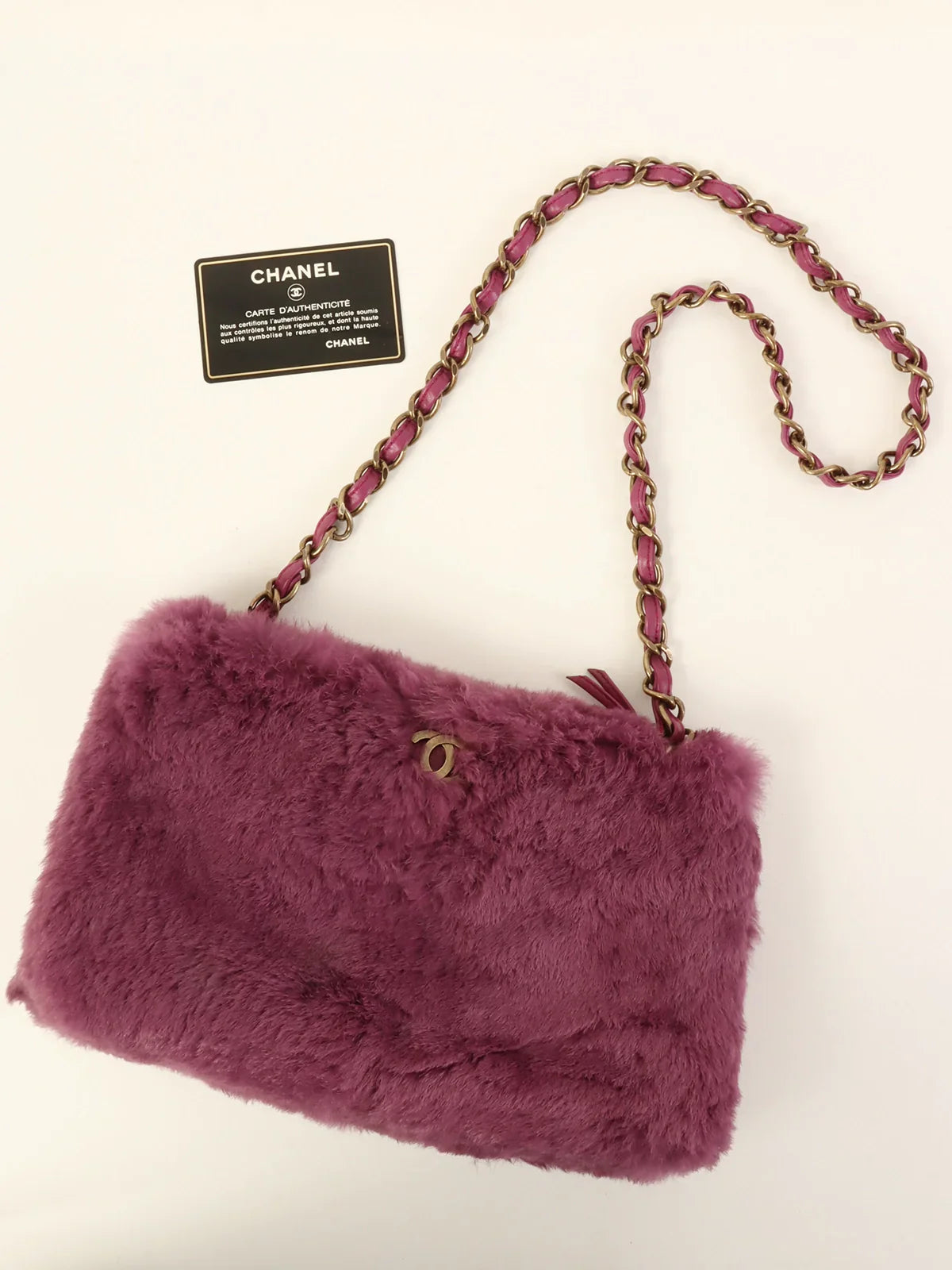 CHANEL Around 2000 Made Fur Cc Mark Plate Chain Shoulder Bag Purple