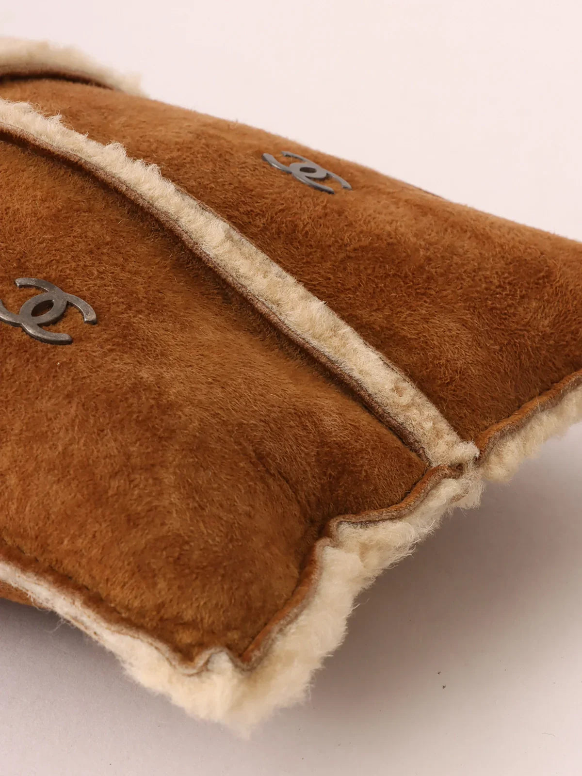 CHANEL Around 2000 Made Muton Cc Mark Plate Clutch Bag Ocher